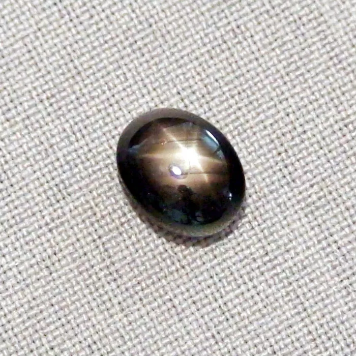 Schwarzer Sternsaphir im Cabochon-Schliff mit 10,97 ct Gewicht, schwarzer Edelstein mit goldbraunen Stern – Top Edelsteine bei der Opal-Schmiede sicher bestellen
