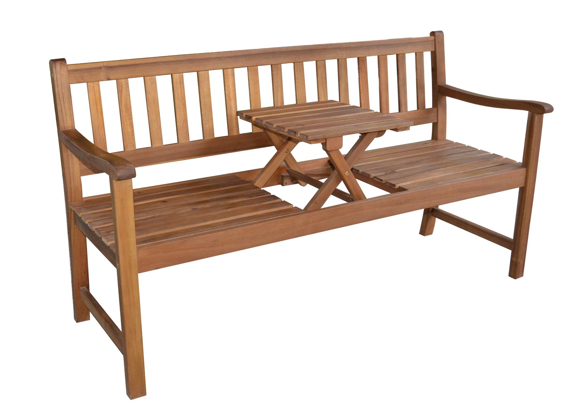 Die Bank Talana ist mehr als eine einfache Gartenbank: Entscheiden Sie selbst, ob Sie zu Dritt auf der 3-er Bank Platz nehmen möchten, oder ob Sie den mittleren Sitzplatz ganz einfach aufklappen und in einen Tisch verwandeln wollen. Für zusätzliche Stabilität sorgen die beiden Querstreben an den Füßen der Gartenbank.