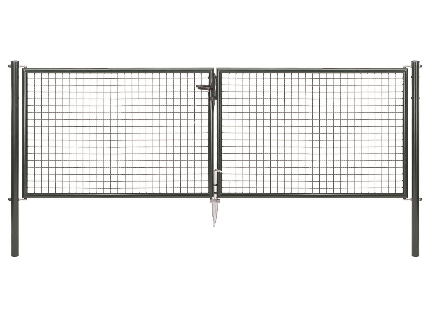 Wellengitter-Doppeltor zur Verwendung an Maschendrahtzäunen Führt das wellige Design des Zaunes ohne Unterbrechung fort Rostschutz durch Zinkphosphatierung Zubehör Das Doppeltor lässt sich mit weiteren Zaunsets ergänzen; so dass Sie sich einen kompletten Zaun zusammenstellen können. Maße / Gewicht ca. B 298,8 x H 75 x T 10 cm / ca. 31,1 kg ca. B 298,8 x H 100 x T 10 cm / ca. 35 kg ca. B 298,8 x H 125 x T 10 cm / ca. 41,5 kg ca. B 298,8 x H 150 x T 10 cm / ca. 46,6 kg Lieferumfang 1x Doppeltor 2x Klobenpfosten