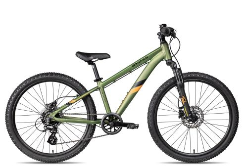 Dann ist das Axess Stipe PRO 24 eine gute Wahl., Die 7 auswählbaren Gangstufen der Shimano Schaltung werden dabei kindgerecht per Drehgriffschalter bedient., Für die ersten Offroadfahrten ist das Axess Stipe PRO 24 mit kräftigen Shimano Hydraulik-Scheibenbremsen und einer 50 mm SR Suntour XCT Jr. Federgabel ausgestattet., Dazu sind die 24 Zoll Laufräder mit breiten, profilierten Reifen ausgestattet., So sind auch Fahrten abseits der Straße gut zu kontrollieren., Mit dem soliden 1×7 Gang Shimano Altus Antrieb können junge Offroadfans erste Schaltmanöver durchführen, ohne überfordert zu werden., Mit dem Stipe PRO 24 zeigt dir Axess ein feines Modell aus der Welt der 24 Zoll bereiften Kindermountainbikes., Axess empfiehlt sein gut ausgestattetes Stipe PRO 24 ab einem Alter von etwa 8 Jahren., Suchst du ein gut ausgestattetes Kinder-Mountainbike zu einem klasse Preis/Leistungs-Verhältnis?