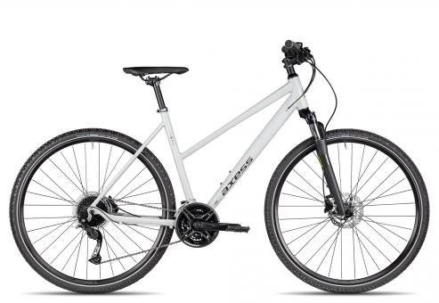 Das Veris Cross Crossrad liefert dir mit seiner 27 Gang Shimano Kettenschaltung eine besonders breite Übersetzung für schnelle Sprints und steile Anstiege., Der feine Axess Aluminiumrahmen sieht mit seiner innenverlegten Zugführung besonders elegant aus und trägt seinen Teil dazu bei, das Gesamtgewicht auf gut 14 kg zu halten, ohne an Steifigkeit einzubüßen., Ein klasse Handling und bewährte Komponenten: Das Axess Veris Cross eignet sich perfekt als günstiges Einstiegsmodell für rasante Tempofahrten., Dank der Lockout-Funktion lässt sie sich leicht feststellen und spart dir somit jede Menge Tretkraft am Berg., Dank ihrer Hydraulik lässt sie sich leicht und gut dosieren., Mit dem puren Axess Veris Cross-Bike bist du auch auf groben Untergründen schnell unterwegs., Dazu sorgt die Tektro Scheibenbremse für zuverlässige Stopps auf jeder Fahrt., Für ruppige Fahrradwege ist am Axess Veris Cross eine SR Suntour NEX Federgabel mit Lockout und