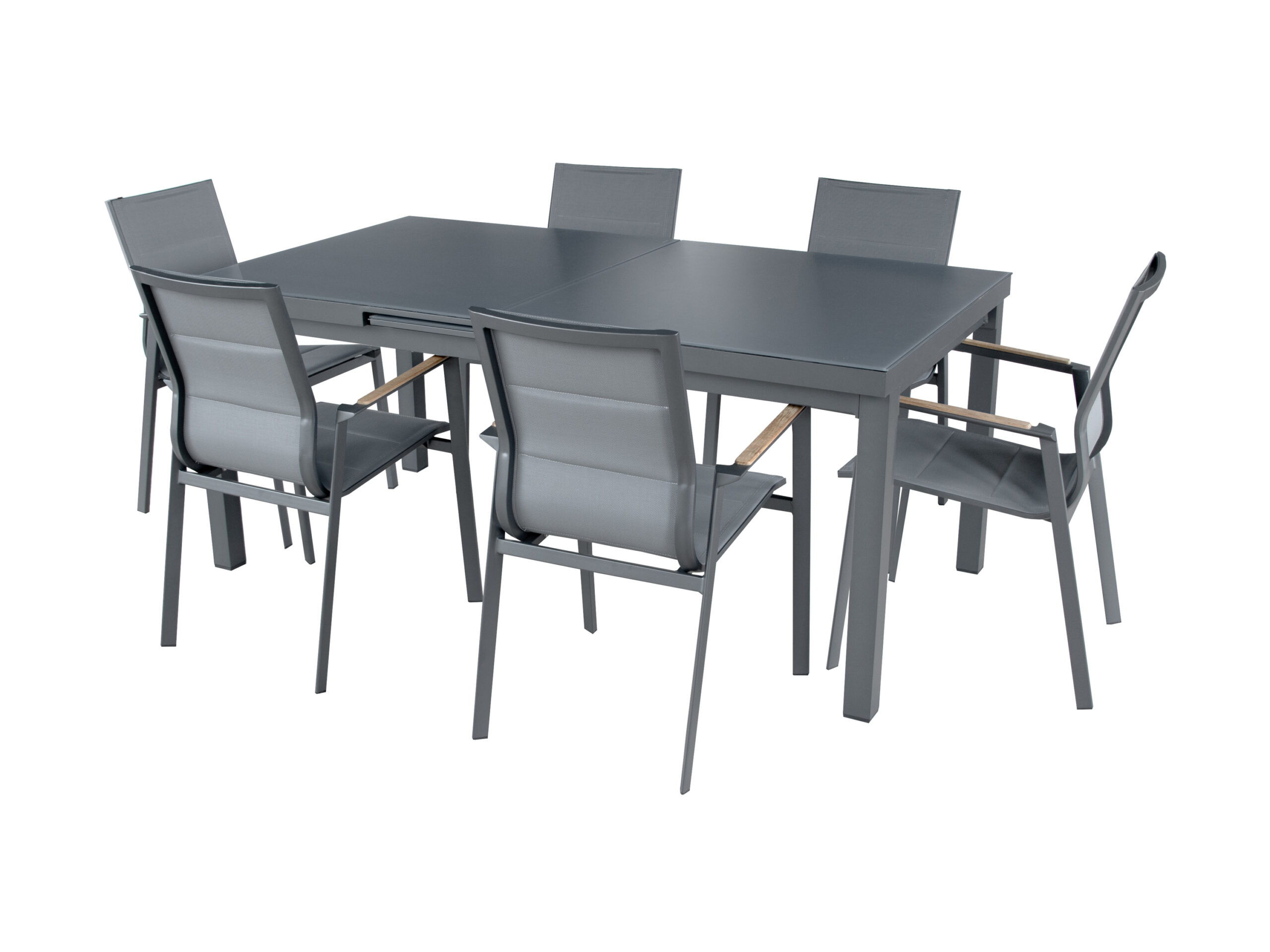 bellavista – Home & Garden® Dining-Set Boston M / Newport Ob im Garten, auf der Terrasse oder im Esszimmer – die exklusive Dining-Kombination aus dem Tisch “Boston M” und den eleganten Sesseln der Serie “Newport” von bellavista – Home & Garden® bietet die perfekte Lösung für gemütliche Mahlzeiten und gesellige Runden mit deinen Liebsten. Tisch “Boston M” – Stilvolle Eleganz trifft auf clevere Funktionalität Der Tisch “Boston M” besticht durch seinen massiven Aluminiumrahmen in modernem Anthrazit. Dieser sorgt nicht nur für hohe Stabilität; sondern verleiht dem Tisch auch eine stilvolle, zeitgemäße Optik. Die strukturierte Sicherheitsglasplatte in dunklem Ton setzt elegante Akzente und ist besonders pflegeleicht. Besonderes Highlight: die automatische Ausziehfunktion! Die Tischplatte lässt sich im Handumdrehen von 160 cm auf 210 cm erweitern – mühelos von nur einer Person. Einfach an einer Seite ziehen und die andere Seite bewegt sich automatisch synchron mit. Der versteckte Mittelteil hebt sich selbstständig an und schließt die Lücke in der Mitte. Mit einem einfachen Handgriff kann die Erweiterung sicher fixiert werden. Jetzt finden weitere Gäste bequem Platz. Das Zurückverkleinern der Tischplatte funktioniert ebenso schnell und unkompliziert. Genieße maximale Flexibilität für jeden Anlass! Zwei Sessel-Varianten stehen Ihnen zur Auswahl: Variante 1: Hochlehner-Sessel “Newport” Stabiles Aluminiumgestell für sicheren Stand und einfache Handhabung. Stufenlose Anpassung der Rückenlehne dank integrierter Gasdruckfeder – bequem bedienbar über einen Knopf an der Armlehne. Armlehnen mit Fsc® 100% zertifizierten Teakholz-Applikationen für natürliche Eleganz. Extra dicke, komfortable Auflagen laden zum Verweilen ein. Pflegeleicht: Bequeme Reinigungsmöglichkeit durch abnehmbare Bezüge mit Reißverschluss (waschbar bei 30 °C). Variante 2: Stapelstühle “Newport” Praktisch stapelbar – für platzsparende Aufbewahrung. Hochwertige Armlehnen mit Fsc® 100% zertifizierten Teakholz-Applikationen. Sitzfläche aus Textilene, leicht gepolstert und ausgestattet mit schnelltrocknendem “Quick Dry”-Schaum – ideal für den Outdoor-Bereich. Dein perfektes Set – abgestimmt auf deine Bedürfnisse. Ob du den luxuriösen Komfort der Hochlehner bevorzugst oder die platzsparende Flexibilität der Stapelstühle – die Dining-Kombination von bellavista – Home & Garden® lässt keine Wünsche offen. Erlebe stilvolle Momente voller Genuss und Geselligkeit. Entscheide dich jetzt für dein Lieblingsset und schaffe eine Atmosphäre; in der sich Familie und Freunde rundum wohlfühlen. Produktmerkmale table{width:100%;}td{padding-right: 30px; padding: 0.5rem; border-bottom: 0.0625rem solid #e3e4e5;} tr:nth-child(odd) {background-color: #F2F3F4;} Serie: Variante 1: Tisch “Boston M” mit 6 Hochlehner-Sesseln “Newport” Variante 2: Tisch “Boston M” mit 6 Stapelstühlen “Newport” Funktion: automatisch ausziehbar Witterungsbeständig: ja Material: Variante 1: Gestell: Aluminium, Tischplatte: Sicherheitsglas, Auflagenbezug: 100 % Polyester, Innenbezug: 100 % Polypropylen, Füllung: 80 % Polyurethane + 20 % Polyester Variante 2: Gestell: Aluminium, Tischplatte: Sicherheitsglas, Sitzbezug: 70 % Pvc, 30 % Polyester, Füllung: 100 % Polyester Max. Belastung: Tisch: mittlere Tischplatte ca. 20 kg, äußere Tischplatten ca. 40 kg, Sessel / Stuhl: ca. 120 kg pro Sitzfläche Maße: Variante 1: Tisch: ca. L 160/210 x B 90 x H 75 cm, Sessel: ca. T 63 x B 56,5 x H 105 cm Variante 2: Tisch: ca. L 160/210 x B 90 x H 75 cm, Stuhl: ca. T 60,5 x B 56 x H 90 cm Gewicht: Variante 1: Tisch: ca. 40,5 kg, Sessel: ca. 6,30 kg pro Sessel mit Auflage Variante 2: Tisch: ca. 40,5 kg, Stuhl: ca. 4,2 kg pro Stuhl Lieferumfang: 1x Tisch, 6x Sessel/Stuhl (basierend darauf, welche Variante gewählt wird), Montagematerial, Anleitung