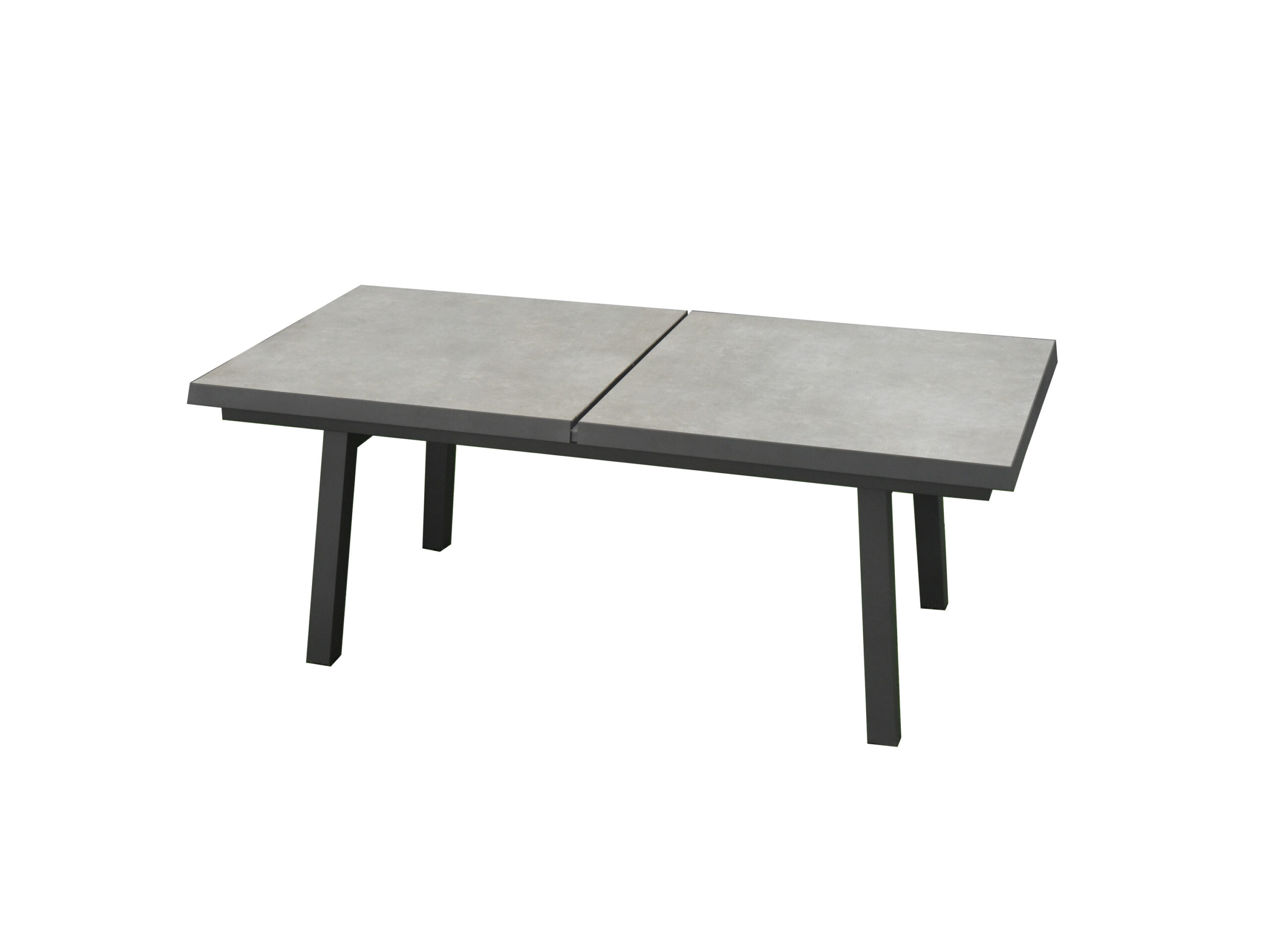 bellavista – Home & Garden® Tisch “Ontario”; mit automatischer Auszieh-Funktion Der Tisch “Ontario” von bellavista – Home & Garden® ist die perfekte Ergänzung für deinen Essbereich im Innen- oder auch im Außenbereich; wie Garten oder Terrasse. Der Aluminiumrahmen ist massiv und sorgt für Stabilität. In seiner Anthrazit-Farbe verleiht er dem Tisch eine moderne und stilvolle Optik. Die Tischplatte ist mit hochwertigen Keramikfliesen ausgelegt, die nicht nur robust und langlebig sind, sondern auch einen Hauch von Eleganz in dein Zuhause bringen. Das besondere an dem Tisch ist die automatische Auszieh-Funktion. In Sekunden lässt sich die Tischplatte von 200 cm auf 260 cm Länge erweitern. Dies kann schnell von nur einer Person erledigt werden. Dafür zieht man an einer Seite der Tischplatte und bewegt dadurch automatisch und synchron die andere. Aus dem dadurch entstandenen Freiraum im Zentrum der beiden Platten, kommt der versteckte Teil des Tisches zum Vorschein und hebt sich automatisch in die Mitte. Jetzt mit einem Handgriff unter die Tischplatte die Einstellung fixieren und schon ist mehr Platz für zwei weitere Personen an dem Tisch. Das Verkleinern der Tischplatte erfolgt auf die gleiche Weise schnell und unkompliziert. Für die perfekte Esstisch-Kombination bietet bellavista – Home & Garden® eine große Auswahl an passenden Stühlen/Sesseln. Produktmerkmale table{width:100%;}td{padding-right: 30px; padding: 0.5rem; border-bottom: 0.0625rem solid #e3e4e5;} tr:nth-child(odd) {background-color: #F2F3F4;} Serie: Ontario Funktion: automatische Auszieh-Funktion Witterungs- und UV-beständig: ja Material: Gestell: Aluminium, Tischplatte: Keramik Max. Belastung: mittlere Tischplatte: ca. 20 kg, äußere Tischplatten: ca. 40 kg Maße: ca. L 200/260 x B 100 x H 77 cm Gewicht: ca. 65 kg