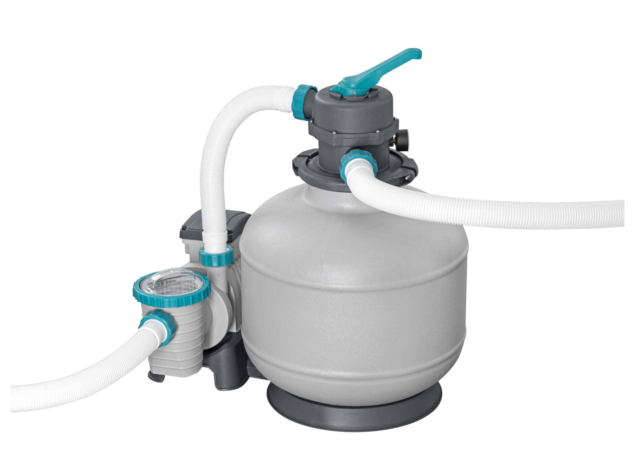 Pumpenleistung: 8.327 l/h System-Durchflussrate: 6.435 l/h Geeignet für Aufstellpools mit 1.100-51.400 Liter Fassungsvermögen Betrieb mit ca. 45 kg #20 Quarzsand, 0,45-0,85 mm oder 1.260 g Polysphere™ Filterbällen (beides nicht enthalten) Langlebiger, korrosionsbeständiger Filtertank 6-Wege-Ventil zur einfachen Steuerung der verschiedenen Funktionen (Filtern, Geschlossen, Rückspülen; Spülen; Ablassen, Umwälzen) Integrierte Zeitschaltuhr ermöglicht eine effizientere Einsatzplanung Um 360° drehbare Flanschklemme Leicht ablesbares Manometer Das Vorfiltersieb fängt gröbere Verunreinigungen vorab ein und erhöht so die Effizienz und Langlebigkeit der Sandfilteranlage Standardstecker mit Personenschutzschalter Das Produkt ist für eine schnelle und einfache Installation vormontiert Passend für 38-mm-Anschlüsse mit Gewinde sowie 32-mm-Anschlüsse unter Verwendung der mitgelieferten Adapter Produktmerkmale table{width:100%;}td{padding-right: 30px; padding: 0.5rem; border-bottom: 0.0625rem solid #e3e4e5;} tr:nth-child(odd) {background-color: #F2F3F4;} Poolgröße 1.100-51.400 L Pumpenleistung 8.327 l/h Durchflussrate 6.435 l/h Anschlussgröße 38-mm-Anschlüsse mit Gewinde sowie 32-mm-Anschlüsse unter Verwendung der mitgelieferten Adapter Leistung 280 W Filter ca. 45 kg #20 Quarzsand, 0,45-0,85 mm oder 1.260 g Polysphere™ Filterbällen (beides nicht enthalten) Gewicht 12,31 kg Lieferumfang –