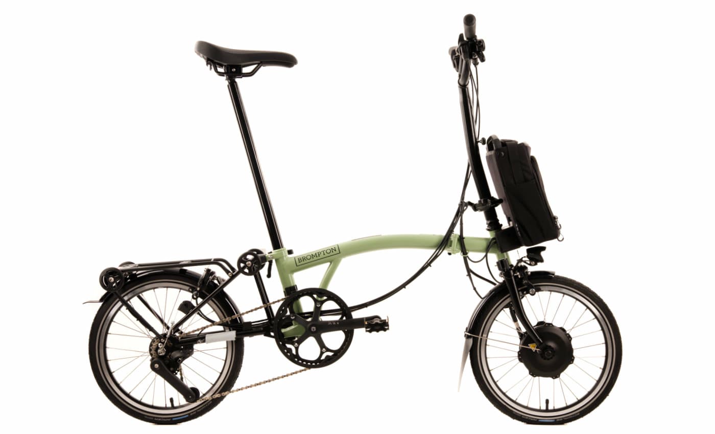 Brompton C-Line Electric 12 Gang 300Wh – Matcha Green Das Brompton C-Line Electric in Matcha Green vereint ikonisches Faltrad-Design mit moderner E-Mobilität und einer praktischen 12-Gang-Schaltung. Kompakt, leistungsstark und elegant – ideal für Pendler und Stadtabenteurer, die auf Stil und Technik setzen. Technische Highlights: Gangschaltung: 12-Gang (2×6), speziell für das Brompton-System konzipiert Motor: 250-W-Nabenmotor mit intelligenter Pedalunterstützung (bis 25 km/h) Akku: 300 Wh Lithium-Ionen-Akku, abnehmbar, Reichweite bis zu 70 km Rahmen: Handgelöteter Stahlrahmen in Matcha Green, hochklappbar Reifen: Schwalbe Marathon Racer 349 x 35C – pannensicher mit Reflexstreifen Faltmaß: 645 × 565 × 270 mm – kompakt genug für Bahn, Büro oder Kofferraum Beleuchtung: Integrierte AVY-LED-Leuchten vorne & hinten Extras: USB-Ladebuchse am Akku, Lezyne-Pumpe, Gepäckträger inklusive Gewicht: Ab 17,6 kg inkl. Akku Bremsen: Brompton Dual Pivot Bremssättel Mit dem Brompton C-Line Electric Matcha Green erlebst du urbane Mobilität völlig neu – leicht, schnell, kompakt und mit frischer Optik. Ideal für den Weg zur Arbeit, spontane Trips oder entspannte Wochenendausflüge. Video: Brompton Electric C Line. The original, made to go further.