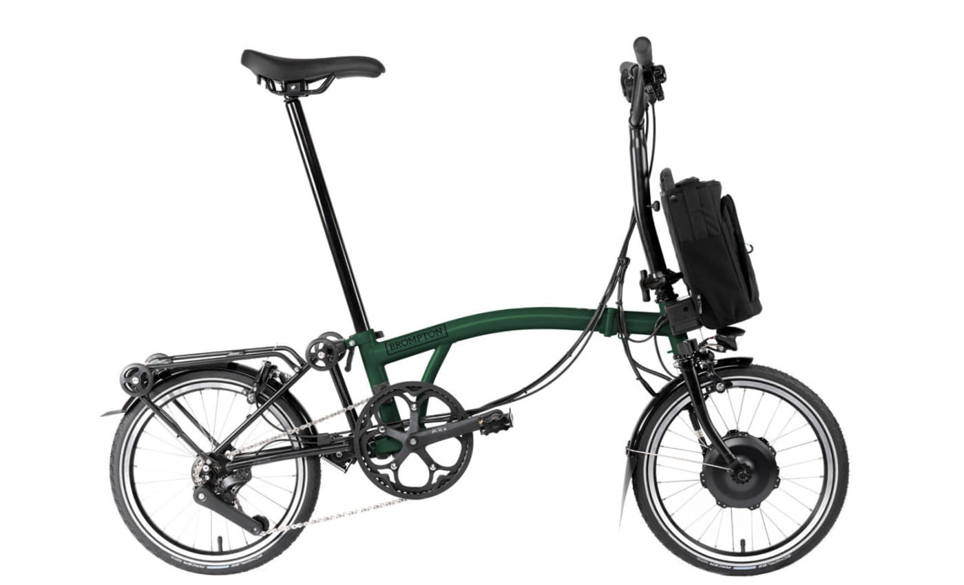 Brompton C-Line Electric 12 Gang 300Wh – Racing Green Mit dem Brompton C-Line Electric in der Farbe Racing Green setzt du auf ein kompaktes, faltbares E-Bike mit großem Fahrspaß. Dank der einzigartigen 12-Gang-Schaltung, einem leistungsstarken 300 Wh Akku und dem leichten Rahmen ist es ideal für tägliche Pendler, urbane Entdecker und Wochenendabenteurer. Technische Highlights: Gangschaltung: 12-Gang (2×6), speziell für Brompton entwickelt Motor: 250 W Nabenmotor mit 3 Unterstützungsstufen, bis 25 km/h Akku: 300 Wh Lithium-Ionen, abnehmbar, Reichweite 45-70 km Reifen: Schwalbe Marathon Racer 349 x 35C – pannensicher mit Reflexstreifen Gewicht: Ab 17,6 kg – inkl. Akku Rahmen: Handgelöteter Stahlrahmen in Racing Green (Black Lacquer-Details optional) Beleuchtung: Integriertes AVY-Frontlicht, Rücklicht am Akku Faltmaß: 645 × 565 × 270 mm – ideal für Bahn, Büro oder Wohnung Sattelstütze: Verlängerte Version, schwarz Bremsen: Brompton Dual Pivot Bremssättel Extras: USB-Ladeanschluss am Akku, Lezyne-Pumpe, Gepäckträger Das Brompton C-Line Electric Racing Green ist der perfekte Begleiter für urbane Mobilität mit Stil. Es kombiniert smarte Technik mit ikonischem Design – und bringt dich entspannt, effizient und mit jeder Menge Fahrfreude ans Ziel. Video: Brompton Electric C Line. The original, made to go further.