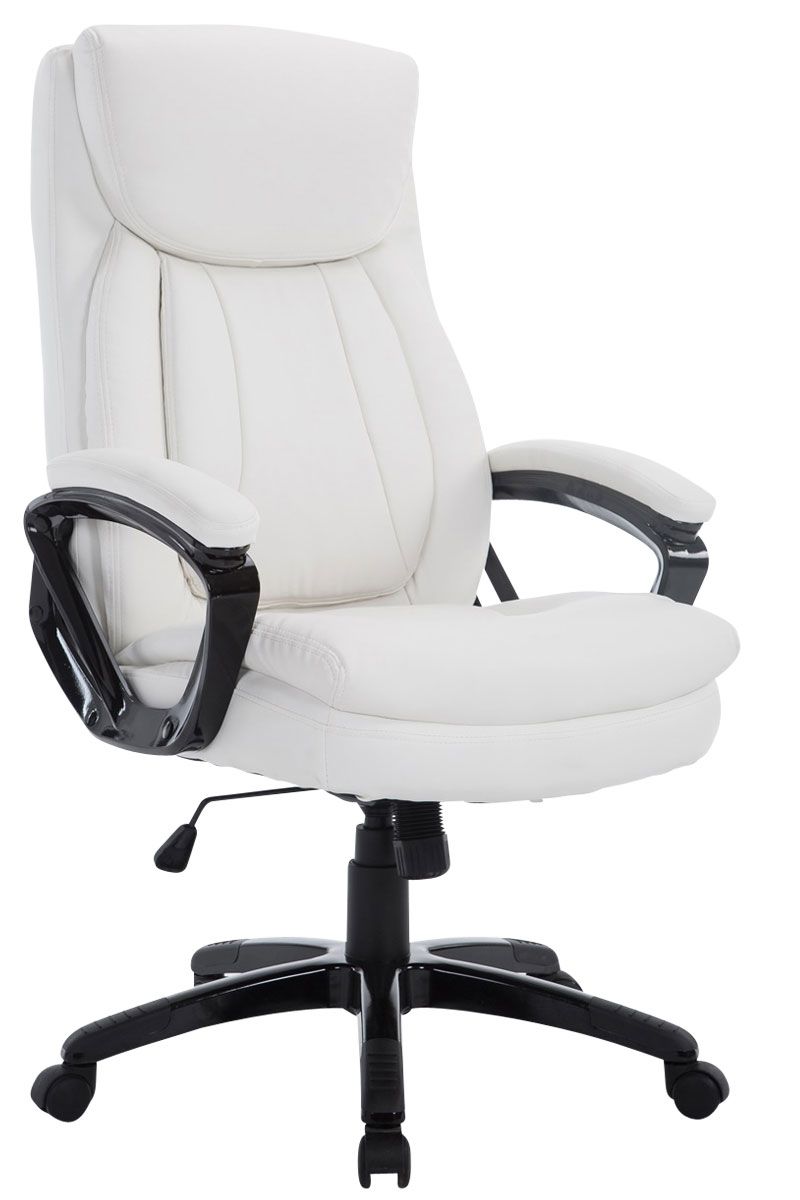 Bürostuhl XL Platon Der moderne Komfort-Chefsessel Platon mit Kunstlederbezug bietet den Vorteil, dass er besonders pflegeleicht ist. Kunstleder sieht nicht nur schön aus, sondern ist elastisch und zieht sich bei Entlastung wieder glatt, somit ist eine hohe Lebensdauer des Sitzbezuges garantiert. Die extra hohe Rückenlehne mit ausgeformtem Polster im Kopfbereich, aber auch die weiche Polsterung der Armlehnen, ermöglichen ein angenehmes Arbeiten. Die stufenlos verstellbare Sitzhöhe sowie der individuell arretierbare Wippmechanismus sorgen für mehr Bewegungsfreiheit. Das Gestell des Drehstuhls besteht aus stabilem Kunststoff und steht auf fünf robusten Kunststofflaufrollen. Egal ob Hart- oder Teppichböden – Sie werden immer leicht und locker über den Boden rollen können. Der Bürostuhl wird zerlegt angeliefert. Materialzusammensetzung: 100% Polyurethan Ca. Maße: Gesamthöhe: 112,5 – 120 c…