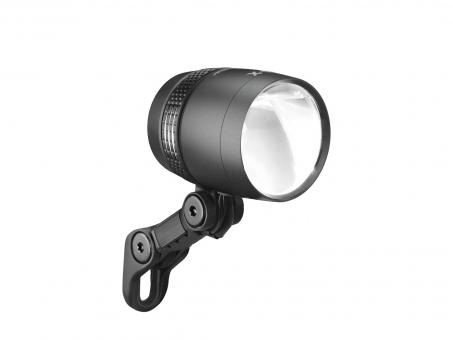 für Gleichspannungsbetrieb 6-60 V, sehr breite, weite und homogene Großflächen-Ausleuchtung der Straße, Details, hell zur Seite abstrahlende Schlitze im Halterring, Ein besonders hochwertiger E-Bike Scheinwerfer mit 150 Lux, made in germany: Der Busch und Müller IQ-X E., Großflächen-Lichtfeld, Voraussetzung: mindestens 7,5 W Nennleistung am Lichtanschluss des Antriebssystems, Maße: ca. 55 x 46 x 54 mm, blau leuchtender Ring auf der Rückseite, Nahfeld-Ausleuchtung, Gewicht: ca. 120 g, Tagfahrlicht, nicht zugelassen für kennzeichenpflichtige Fahrzeuge (45 km/h E-Bikes), 150 Lux, edles Aluminium-Gehäuse