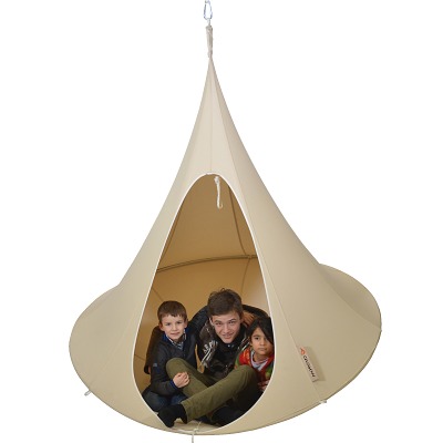 Cacoonworld Hängehöhle Cacoon für Schule, Outdoor und Anwendungen – Das Hängenest Cacoon von Cacoonworld ist ein Ort, um es sich bequem zu machen, zu entspannen und sich geborgen zu fühlen – oder um einfach zur Ruhe zu kommen. Für den angenehm weichen, naturweißen Kokon bieten sich viele Anwendungsmöglichkeiten im Freizeit und im Outdoor-Bereich. – Ein Rückzugsort – Die Cacoonworld Hängehöhle Cacoon ist für Kinder mit sensorischen Störungen ein Ort zum Zurückziehen. Wenn Sie den Cacoon zusätzlich mit Kissen auspolstern, ist der Rückzugsort ein Platz, um sich geborgen zu fühlen. Sanfte Schaukelbewegungen entführen ins Reich der Träume. Hyperaktive Kinder können sich beruhigen und wertvolle Bewegungserfahrungen sammeln. Natürlich dürfen die Kids ihre Lieblingsspielzeuge mitnehmen. – Eine Bereicherung für Kinder – Aber auch für Kindertagesstätten, Kindergärten und Vorschulen sind die Cacoons beliebt: die kleinen, hängenden Höhlen haben einen äußerst hohen Aufforderungscharakter, laden zum Spielen, Verstecken und zu fantasievollen Rollenspielen ein. Das Hängenest ist eine Bereicherung für jede Einrichtung. Jedes Cacoon Schaukelnest ist bis 200 kg belastbar. – Einsatz im Innen- und Außenbereich und dabei pflegeleicht – Die Hängenester Cacoon können sowohl im Innen-, als auch im Außenbereich eingesetzt werden. Der hochwertige Zeltplanen-Stoff aus dem Outdoor-Bereich (100 % Polyester) ist sehr pflegeleicht. Der Zellstoff kann bei Kaltwäsche ohne Bleichmittel in der Waschmaschine gewaschen werden. – Die Hängenester sind in 3 Größen lieferbar: – Hängenest Bebo: ø 1,2 m – Die kleine Ausführung für 1-2 Kinder, Farbe: Naturweiß, lichte Höhe: Idealerweise 2,50 m, mindestens 2,25 m, Grundfläche am Boden: Idealerweise ø 1,90 m, mindestens ø 1,30 m – Hängenest Single: ø 1,50 m – Für 1 Erwachsenen oder 1-3 Kinder, Farbe: Naturweiß oder Rot, lichte Höhe: Idealerweise 2,70 m, mindestens 2,45 m, Grundfläche am Boden: Idealerweise ø 2,25 m, mindestens ø 1,60 m – Hängenest Double: ø 1,80 m – Die großzügige Ausführung für bis zu 2 Erwachsene, Farbe: Naturweiß oder Rot, lichte Höhe: Idealerweise 2,80 m, mindestens 2,45 m, Grundfläche am Boden: Idealerweise ø 2,55 m, mindestens ø 1,90 m – Bestandteile: – 1 Cacoon – 1 5 m Hängeseil mit Stahlkarabinerhaken (wird oben am Cacoon befestigt) – 1 Set mit 8 Aluminium-Ringsegmenten – 1 Cacoon-Tragetasche – Produktdetails: – Material: Leinwand aus Polyester – Material: Stützring (Aluminium) – Belastbar bis 200 kg