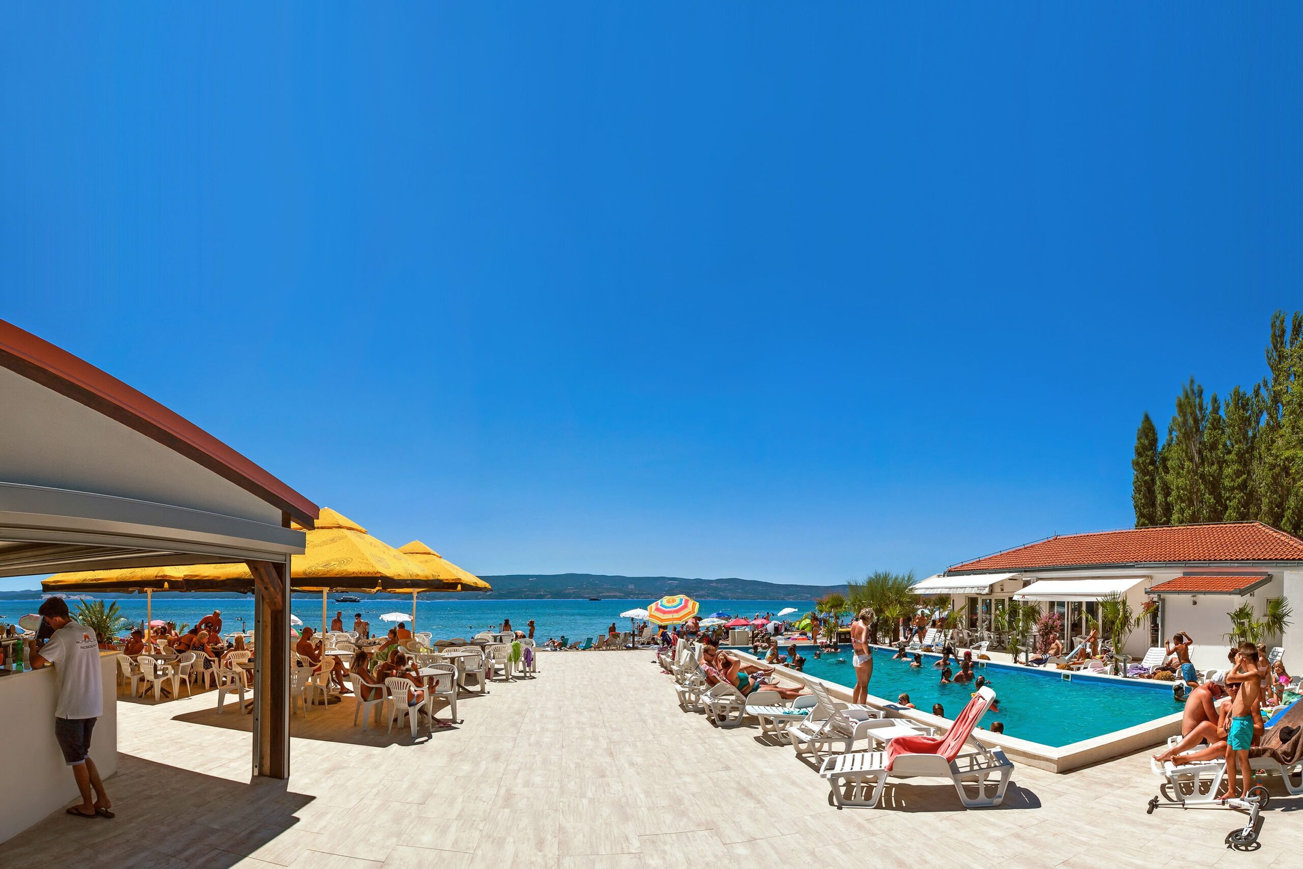 Hier können Sie schwimmen, windsurfen, Wasserski fahren und natürlich die Sonne am Sandstrand genießen. Camp Almissa hat einen Swimmingpool mit einem separaten Kinderbecken und einer Strandbar. Es gibt viel Schatten, was in den heißen Sommertagen herrlich ist! Komfort steht an erster Stelle und es ist für jeden etwas dabei: Toben Sie sich auf einem der Sportplätze aus, essen Sie einen Happen im neuen Restaurant (direkt am Meer gelegen) oder lassen Sie sich vom abwechslungsreichen Unterhaltungsprogramm überraschen. Für sportliche Urlauber bietet der Campingplatz Ausflugsprogramme an. Die Kinder können sich auf dem Spielplatz und im Miniclub austoben.