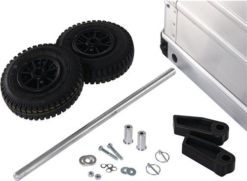 Clip-On-Rollensatz nachrüstbar o.Werkzeug f.B 500mm 2-tlg.Offroad · Rollen-Ø 220 mm · für eine Werkzeuglose Montage · für schweres Gelände · Luftbereifung, Breite 40 mm · mit 2 klappbaren Stützfüßen · Bodenfreiheit wird auf 65 mm erhöht · VE = 2 Rolle
