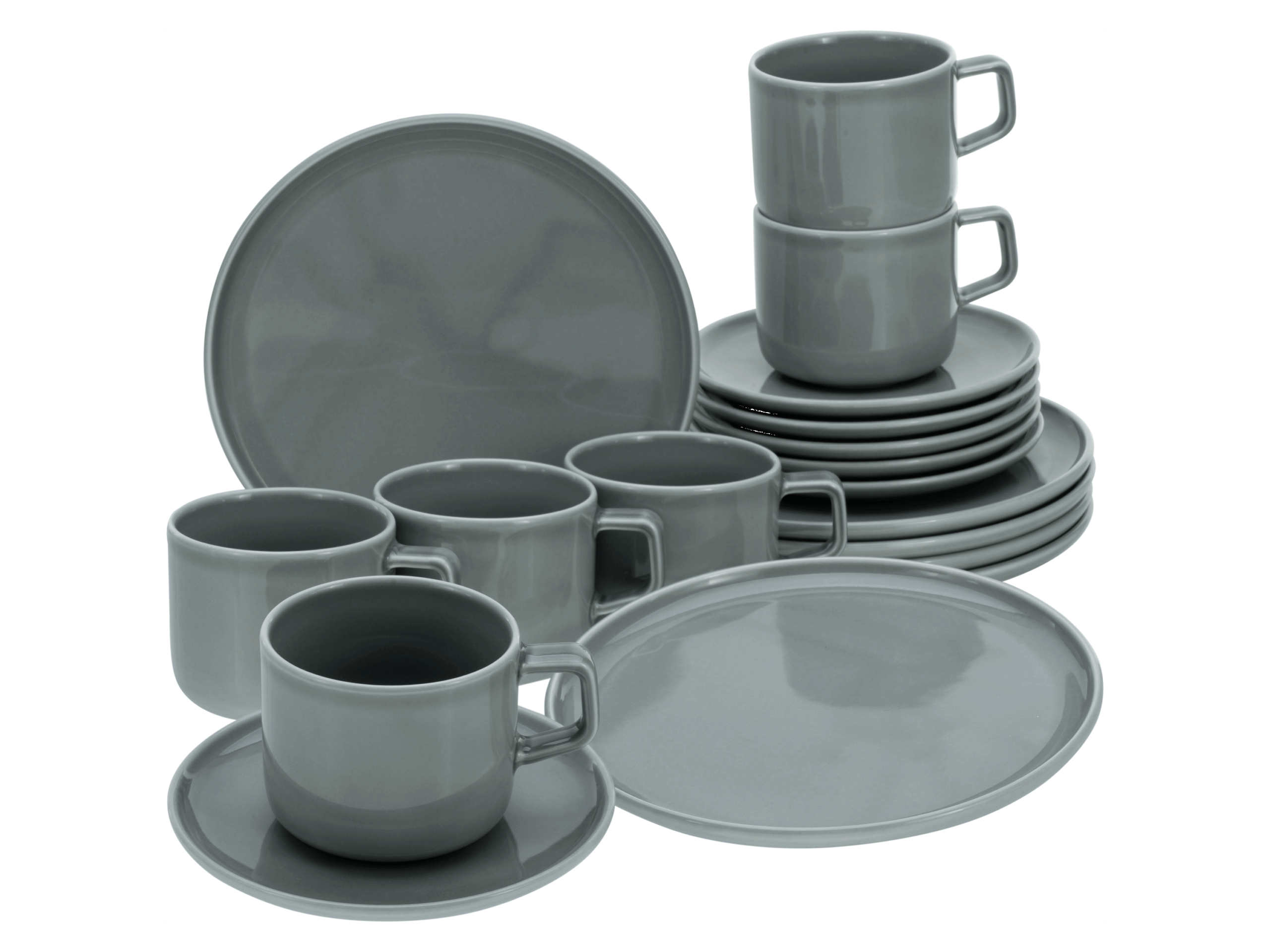 Creatable Geschirrset Chef Collection Designklassiker Moderne Formensprache mit sehr flachen Tellern im Material (Porzellan aus einer europäischen Premiumproduktion) und in der Farbgebung (Vintage Grau oder Weiß). Naturglasure Durch Beimischung von Farbpigmenten wird aus strahlendweissem Porzellan ein modernes Farbprogramm. Die Farben sind nicht immer deckend. Nachhaltige Freude Das Geschirr begleitet Dich durch den ganzen Tag. Es ist außergewöhnlich lang haltbar und selbstverständlich auch spülmaschinen- und mikrowellengeeignet. Markenqualität Unser Geschirr wird in Deutschland konzipiert und in ausgewählten Premiumfabriken produziert, um Dir die Qualität zu liefern, die Du Dir für Dein Zuhause wünschst. Außerdem ist für Bruchersatz in der Regel zeitnah und jahrelang gesorgt! Produktmerkmale table{width:100%;}td{padding-right: 30px; padding: 0.5rem; border-bottom: 0.0625rem solid #e3e4e5;} tr:nth-child(odd) {background-color: #F2F3F4;} Spülmaschinengeeignet: ja Mikrowellengeeignet: ja Material: Porzellan Maße: 12-teilig: 6 Speiseteller (Ø 26 cm) und 6 Suppenteller (Ø 20 cm);18-teilig: 6 Dessertteller (Ø 20 cm), 6 Obertassen (25 cl) und 6 Untertassen (Ø 15 cm)