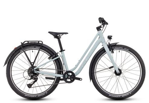 Das vollausgestattete Cube Ella 240 ist genau das passende Kinderrad für Fahrten zur Schule und gemeinsame Familienausflüge., Gebremst wird das Cube Ella 240 Kinderfahrrad mit leichten Felgenbremsen an Vorder- und Hinterrad., Schutzbleche, Ständer und Gepäckträger, sowie eine moderne LED-Lichtanlage lassen keine Wünsche offen., Die bewährte 8-Gang Schaltung von Shimano wird sportiv per Fingerschalthebel bedient und ermöglicht auch in jungen Jahren schon erste Schaltmanöver., Dazu werden der Scheinwerfer und das Rücklicht von einem Shimano Nabendynamo mühelos mit Energie versorgt., Und damit an das Ella 240 auch auf groben Untergrund etwas mehr Komfort bietet, zieht Cube grobstollige Reifen auf die 24 Zoll Laufräder., Ein feines, Cube-typisches Design und rundum mit allem ausgestattet, was ein modernes Kinderrad benötigt: Das 24 Zoll Cube Ella 240 Kinderfahrrad., Dazu bietet sie genügend Übersetzung um auch längere Ausflüge kraftsparend