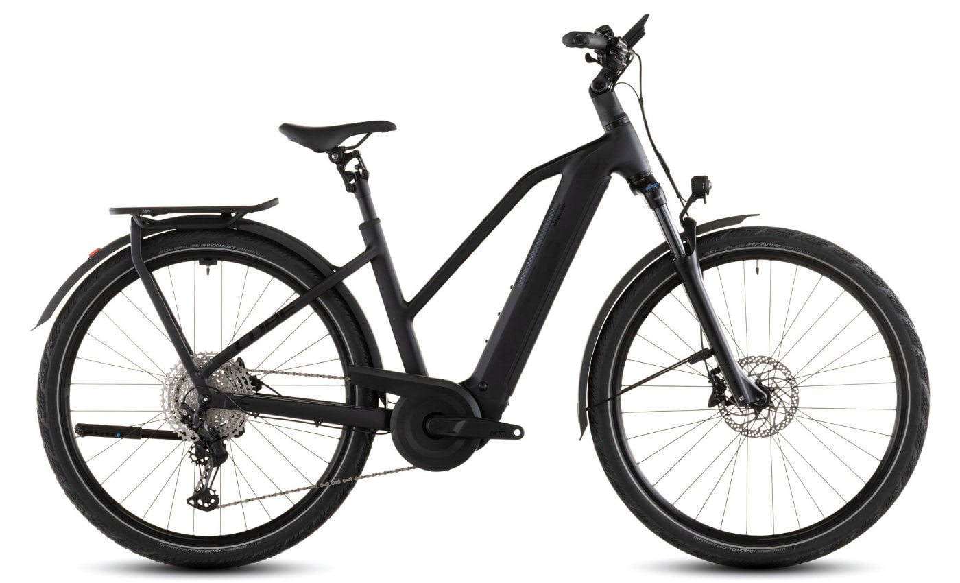 Cube Kathmandu Hybrid Pro 800 Trapez – coal’n’black Das Cube Kathmandu Hybrid Pro 800 Trapez in coal’n’black verbindet elegantes Rahmendesign mit innovativer E-Bike-Technologie. Der formschön integrierte Bosch Performance Line CX Motor mit bis zu 100 Nm Drehmoment arbeitet harmonisch mit dem 800 Wh PowerTube Akku zusammen – für kraftvolle Unterstützung auf langen Touren wie im Alltag. Dank Efficient Comfort Geometry und 100 mm Luftfedergabel fährt sich das E-Trekkingbike komfortabel und sicher, auch auf unebenen Wegen. Die breit gefächerte Shimano XT 12-fach Schaltung sorgt für präzise Gangwechsel, während die hydraulischen Shimano 4-Kolben-Scheibenbremsen jederzeit für zuverlässige Bremskraft stehen. Für noch mehr Komfort gibt es eine SR Suntour Parallelogramm-Sattelstütze, einen verstellbaren Vorbau und ergonomische Griffe. Praktisch: Der integrierte IC 3.0 Gepäckträger bietet viel Platz für Reisegepäck, unterstützt von einem kompletten Zubehörset inklusive Lichtanlage, Schutzblechen, Ständer und Schloss. Rahmen: Aluminium Superlite, IC 3.0, Fully Integrated Battery Rahmentyp: Trapez Rahmengrößen: 46, 50, 54, 58 cm Motor: Bosch Performance Line CX, bis 100 Nm Akku: Bosch PowerTube 800 Wh Display: Bosch Kiox 500 Schaltung: Shimano XT 12-fach Bremsen: Shimano BR-MT420, 4-Kolben, hydraulisch Federgabel: SR Suntour NX1-32 Air, 100 mm Laufräder: ACID SLX 25, Tubeless Ready Reifen: Schwalbe Marathon Efficiency, 55 mm Sattelstütze: SR Suntour NVX Parallelogramm, gefedert Gepäckträger: Cube IC 3.0 integriert Ausstattung: Lichtanlage, Schutzbleche, Ständer, Schloss Gewicht: ca. 27,8 kg Farbe: coal’n’black Max. Systemgewicht: 140 kg Mit seinem kraftvollen Bosch Antrieb, hochwertiger Ausstattung und durchdachten Komfortdetails ist das Cube Kathmandu Hybrid Pro 800 Trapez coal’n’black der perfekte Begleiter für ausgedehnte Touren und den täglichen Einsatz.