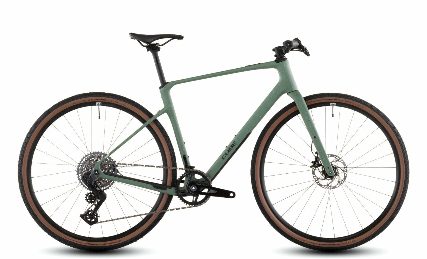 Cube Nulane C:62 SLT – Diamant – greensmoothie’n’green Das Cube Nulane C:62 SLT in greensmoothie’n’green ist ein ultraleichtes Rad mit C:62® Advanced Twin Mold Carbonrahmen und effizienter Road-Performance für sportliche Fahrer. Rahmen: C:62® Advanced Twin Mold, Internal Cable Routing, Flat Mount Disc, Fender/Rack & Kickstand Option Gabel: CUBE TS Disc, Full Carbon, Flat Mount, Taper Antrieb: Sram Rival XPLR AXS E1, 13-Speed, Sram Rival E1 XPLR DUB Wide Kurbel, 40T, Kassette 10-46T Bremsen: Magura MT4, hydraulisch, Flat Mount, 160/160 mm Reifen: Schwalbe G-One Allround, Kevlar, 45-622, Tubeless Ready Gewicht: 8,8 kg Max. Fahrergewicht: 100 kg Mit Carbon-Leichtbau, hochwertigen Sram Komponenten und Tubeless Ready Laufrädern bietet das Cube Nulane C:62 SLT schnelle und komfortable Performance auf der Straße.
