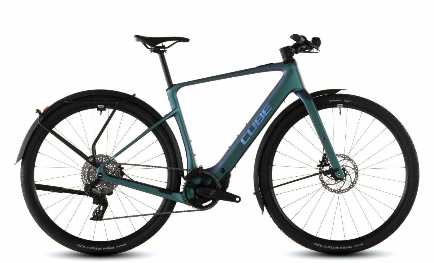 Cube Nulane Hybrid C:62 SLX 400X FE – polarlight’n’prism Das Cube Nulane Hybrid C:62 SLX 400X FE in polarlight’n’prism ist ein sportliches Urban- und Gravel-E-Bike mit Premium-Ausstattung. Der leichte C:62® Carbonrahmen mit Gravel Endurance Geometrie bietet Agilität und Komfort auf allen Strecken. Angetrieben wird es vom kompakten Bosch Performance SX Motor (60 Nm) in Kombination mit dem CompactTube 400 Akku, der für Dynamik bei geringem Gewicht sorgt. Mit der kabellosen SRAM Apex XPLR AXS 12-fach Schaltung genießt du schnelle, präzise Gangwechsel. Die leistungsstarken Magura MT8 Pro Scheibenbremsen sorgen für maximale Kontrolle, auch auf langen Abfahrten. Newmen X.R.25 Laufräder und Conti Terra Speed Reifen garantieren Leichtlauf und Grip auf Asphalt wie Schotter. Dank kompletter FE-Ausstattung mit Lichtanlage, Schutzblechen, Gepäckträger und Ständer ist das Nulane sofort bereit für Alltag und Abenteuer. Rahmen: C:62® Carbon, Gravel Endurance Geometrie, integrierte Kabelführung Antrieb: Bosch Performance SX, 60 Nm / CompactTube 400 Wh Schaltung: SRAM Apex XPLR AXS, 12-fach Gabel: C:62® Carbon Starrgabel Bremsen: Magura MT8 Pro, hydraulische Scheibenbremsen (180/180) Laufräder: Newmen Performance X.R.25, Tubeless Ready Reifen: Continental Terra Speed ProTection, 45-622 Ausstattung: Lichtanlage, Schutzbleche, Gepäckträger, Ständer Gewicht: ca. 15,4 kg Farbe: polarlight’n’prism Das Cube Nulane Hybrid C:62 SLX 400X FE in polarlight’n’prism ist das ideale E-Bike für Pendler und Gravel-Enthusiasten, die Wert auf Carbon-Leichtigkeit, High-End Komponenten und alltagstaugliche Ausstattung legen.