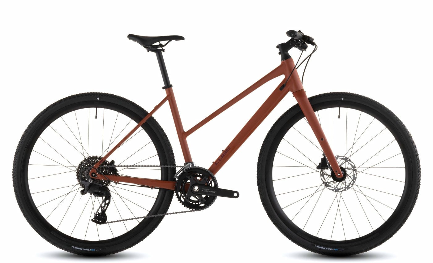 Cube Nulane Race – Trapez – amber’n’black Das Cube Nulane Race Trapez vereint sportliches Design und Trekkingkomfort in einem leichten Aluminiumrahmen. Mit der CUBE TS Disc Carbon-Gabel und der Shimano Cues 10-Gang-Schaltung meisterst du jede Tour mühelos. Die Schwalbe G-One R Pro Reifen sorgen für sicheren Grip auf Asphalt und leichten Trails. Rahmen: Aluminium Superlite Trekking Sport, Flat Mount Disc Federgabel: CUBE TS Disc, Full Carbon, 12x100mm Schaltung: Shimano Cues RD-U6020-SGS, 10-Speed Bremsen: Tektro HD-R280, hydraulische Scheibenbremsen, 160mm Laufräder/Reifen: CUBE RA 2.3 Aero Disc, Schwalbe G-One R Pro, 40-622 Max. Fahrergewicht: 100 kg / Max. Systemgewicht: 115 kg Sattel & Sattelstütze: ACID Nuance Lite, CUBE Performance Post Pedale: ACID PP Trekking