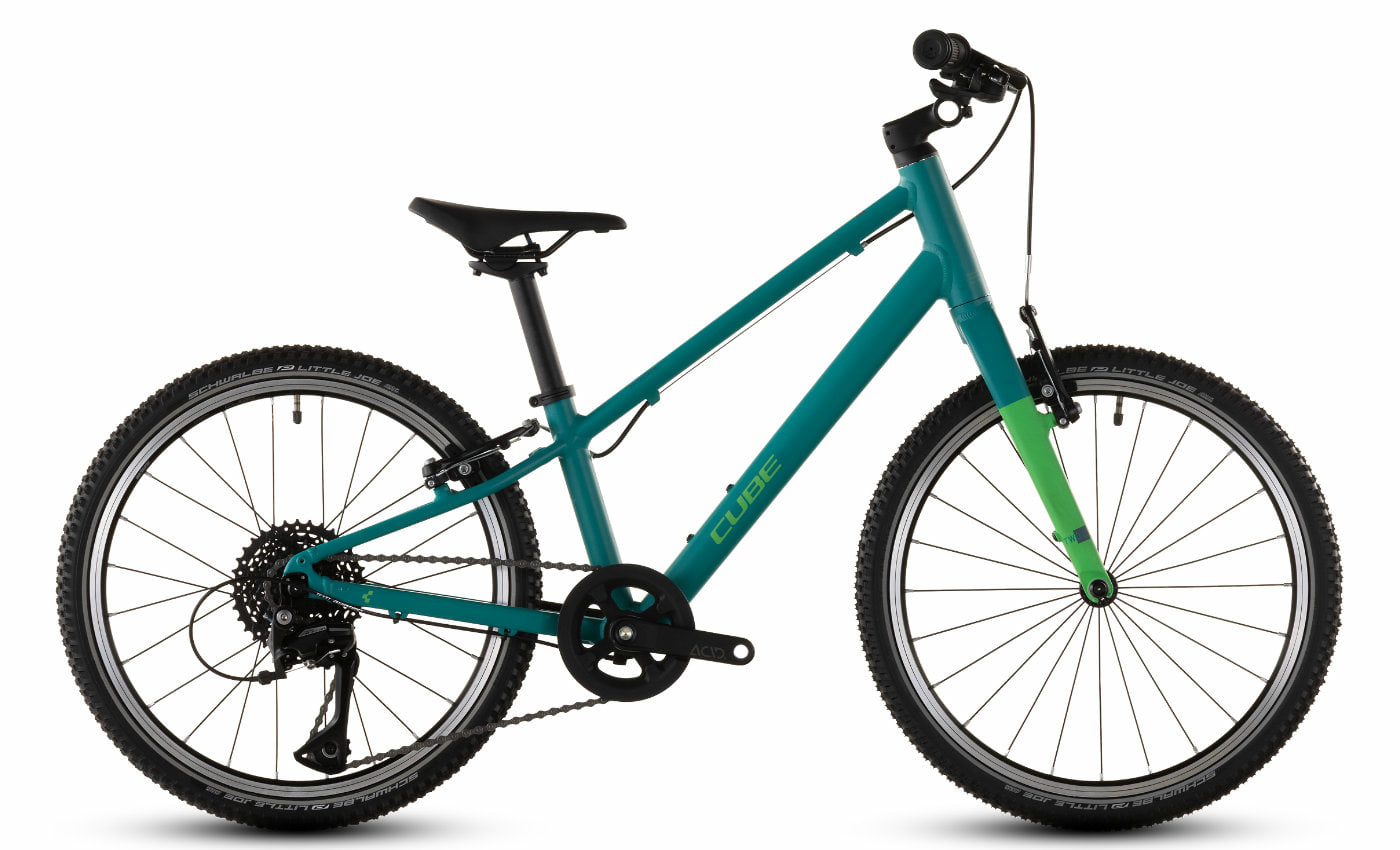 Cube Numove 200 – seagreen’n’green Das Cube Numove 200 ist ein ultraleichtes Kinderfahrrad für kleine Abenteurer, die bereit für längere Touren und erste Schaltungen sind. Mit nur 7,6 kg Gewicht und einem robusten Aluminium Lite Rahmen überzeugt es durch einfaches Handling und hohen Fahrspaß. Die Geometrie ist speziell auf Kinder abgestimmt und unterstützt Sicherheit und Komfort. Schaltung und Bremsen: Ausgestattet mit einer präzisen Shimano 8-fach Schaltung können Kinder neue Gänge entdecken und ihre Fahrtechnik verbessern. Die V-Brakes vorne und hinten sorgen für zuverlässige Bremsleistung, egal ob auf Asphalt oder im Gelände. Kindgerechte Ausstattung: Die ACID Numove Kurbel mit schmalem Q-Faktor erleichtert die Kraftübertragung. Zusammen mit dem verstellbaren CUBE Vorbau, kindgerechten Griffen, dem ACID Rookie Sattel und den leichten Schwalbe Little Joe Reifen ist das Bike optimal auf junge Fahrer zugeschnitten. Rahmen: Aluminium Lite 6061 Farbe: seagreen’n’green Größe: 20 Zoll Gabel: Aluminium Lite 6061 Schaltung: Shimano 8-fach Bremsen: V-Brake vorne und hinten Kassette: Sunrace 11-34T Laufräder: ACID Pro ZX17, 24 Speichen Reifen: Schwalbe Little Joe 20 x 1.4 Kurbel: ACID Numove 30T, narrow Q-Factor Sattel: ACID Rookie Sattelstütze: CUBE Performance Post, 27.2 mm Pedale: ACID PP Rookie medium Gewicht: ca. 7,6 kg Max. Fahrergewicht: 30 kg Max. Systemgewicht: 40 kg Das Cube Numove 200 seagreen’n’green ist das perfekte Kinderfahrrad für den Einstieg in längere Touren – leicht, sicher und ausgestattet mit Schaltung für mehr Fahrspaß.