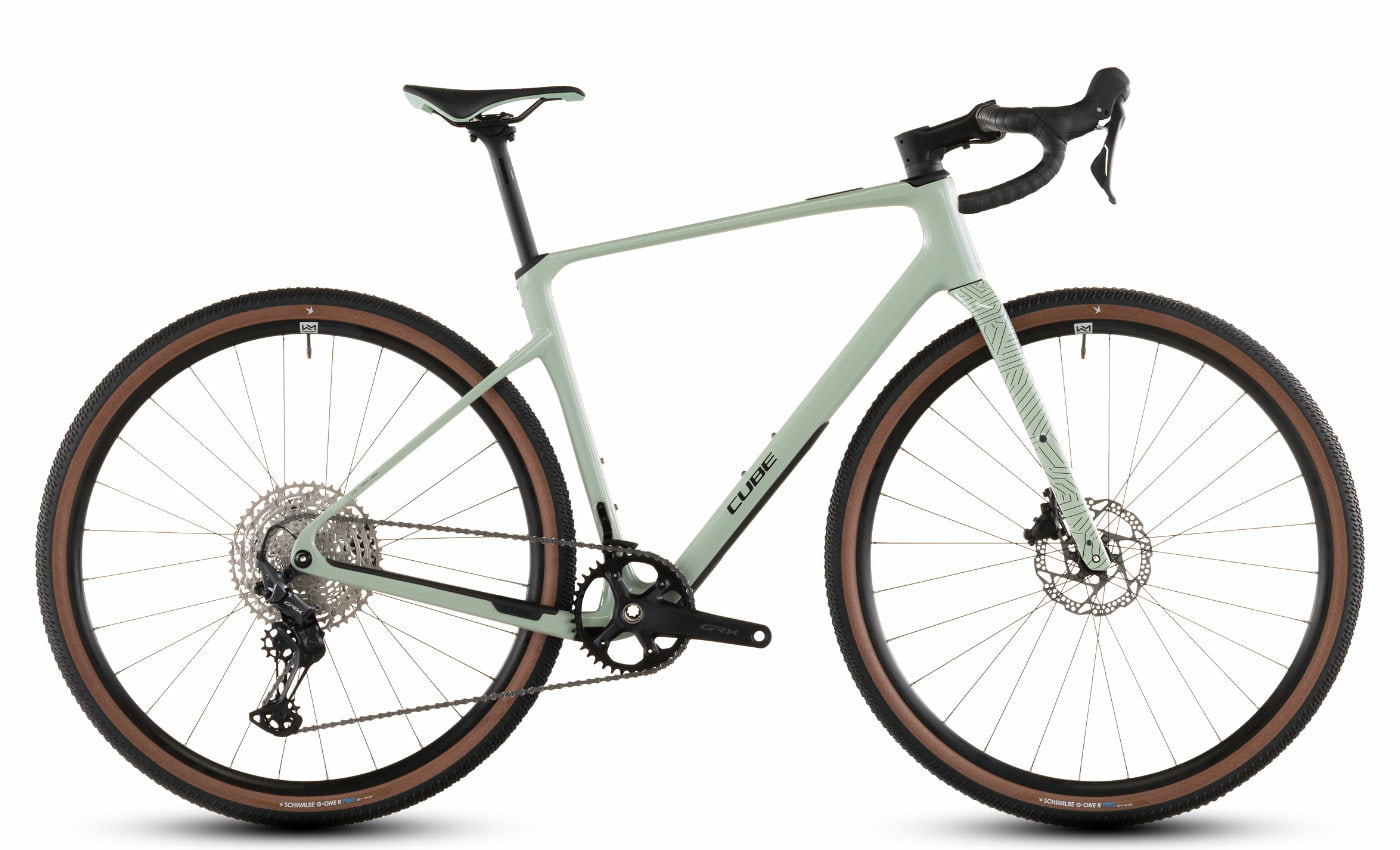 Cube Nuroad C:62 ONE – aloegreen’n’black Das Cube Nuroad C:62 ONE in aloegreen’n’black bringt Leichtbau, Robustheit und Vielseitigkeit perfekt auf einen Nenner. Sein hochwertiger C:62 Carbonrahmen wiegt in mittlerer Größe gerade einmal 1150 g und bietet Reifenfreiheit bis 50 mm (oder 45 mm mit Schutzblechen). Integrierte Zugführung und eine integrierte Sattelklemme sorgen für den cleanen Look, während die C:62 Carbongabel mit Aufnahmepunkten für Schutzbleche und Gepäckträger maximale Flexibilität bietet. Ein Gravel-Bike, das für Abenteuer gemacht ist! Ausgestattet mit der Shimano GRX 12-fach Schaltung liefert das Nuroad C:62 ONE präzise Schaltvorgänge und eine große Übersetzungsbandbreite. Die hydraulischen GRX Scheibenbremsen garantieren zuverlässige Verzögerung bei allen Bedingungen. Auf Newmen Performance X.R.25 Laufrädern rollen leichte und griffige Schwalbe G-One R Pro Reifen, die Speed und Kontrolle vereinen. Carbonlenker, Carbonsattelstütze und ein sportlicher ACID Nuance Pro Sattel runden das Setup ab. Damit bist du bereit für lange Touren, Schotterabenteuer und schnelle Fahrten auf jedem Untergrund. Rahmen: C:62 Carbon, Advanced Twin Mold, Flat Mount Disc, UDH™ Rahmentyp: Diamant Gabel: C:62 Carbon, Tapered, mit Lowrider- und Schutzblech-Aufnahmen Schaltung: Shimano GRX 12-fach Bremsen: Shimano GRX, hydraulische Scheibenbremsen Kurbelgarnitur: Shimano GRX FC-RX610, 40T Kassette: Shimano Deore 10-51T Laufräder: Newmen Performance X.R.25, Tubeless Ready Reifen: Schwalbe G-One R Pro, 45 mm, Tubeless Ready Lenker: Newmen Advanced Gravel Bar, Carbon Sattelstütze: Newmen Advanced, Carbon, 27.2 mm Sattel: ACID Nuance Pro Gewicht: ca. 9,4 kg Farbe: aloegreen’n’black Max. Systemgewicht: 130 kg Das Cube Nuroad C:62 ONE aloegreen’n’black ist ein leichtes, vielseitiges und leistungsstarkes Gravel-Bike – perfekt für Abenteuer auf Schotter, Asphalt und allem dazwischen.