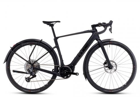 Dazu beherbergt der elegante Rahmen den kompakten und leichten Bosch SX Motor und einen fest integrierten 400 Wh Akku (optional mit Range-Extender um 250 Wh erweiterbar)., Feld, Wiese, Schotterpiste und Stadt: Mit dem Cube Nuroad Hybrid C:62 SLX FE 400X kommst du überall durch., Der Bosch System Controller sitzt unscheinbar auf dem Oberrohr und die Steuerung des Bosch Motorsystems erfolgt über eine kleine Fernbedienung am Griff., Schnelles Carbon-Gravelbike mit Bosch SX-Antrieb, elektronischer Schaltung und StVZO-konformer Alltagsausstattung: Cube Nuroad Hybrid C:62 SLX FE 400X., Platz für 50 mm breite Reifen (45er Schwalbe G-One ab Werk), sowie Rival eTap AXS Bremsen und eine Funk-GX Eagle AXS 12-fach Schaltung von SRAM präsentieren sich reibungsarm und modern., Am Cube Nuroad Hybrid C:62 SLX FE 400X bekommst du dazu noch zusätzliche 55 Nm/600 Watt Spitzenleistung vom Bosch SX Motor!, Und wenn es dir dann doch zu deftig wird, schiebt
