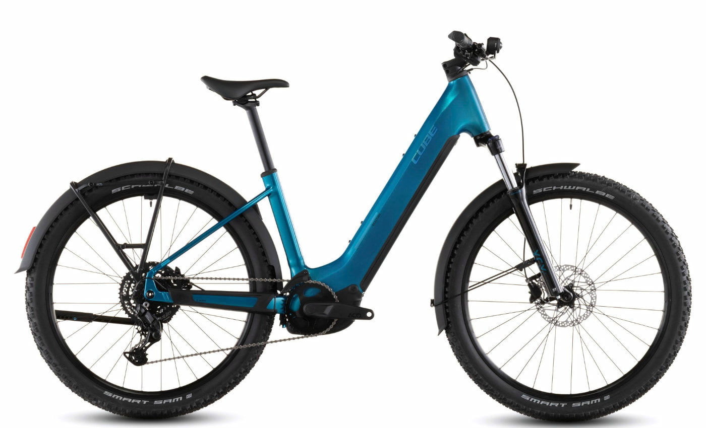 Cube Reaction Hybrid Performance 600 FE – electricblue’n’dazzle (Wave) Das Cube Reaction Hybrid Performance 600 FE in electricblue’n’dazzle mit komfortablem Wave-Rahmen ist ein vielseitiges E-Bike für Alltag und Touren. Der stabile Aluminiumrahmen mit tiefem Einstieg erleichtert das Auf- und Absteigen und sorgt für Fahrkomfort. Angetrieben wird es vom kraftvollen Bosch Performance Line Motor mit 75 Nm Drehmoment, kombiniert mit dem PowerTube 600 Akku für ausdauernde Unterstützung im Alltag und auf längeren Strecken. Die robuste Shimano Cues 9-fach Schaltung sorgt für zuverlässige Gangwechsel, während die SR Suntour XCM34 Federgabel mit 100 mm Federweg Unebenheiten souverän abfedert. Die Shimano MT200 Scheibenbremsen garantieren Sicherheit in jeder Situation. Mit kompletter Ausstattung aus Lichtanlage, Schutzblechen, Gepäckträger, Ständer und integriertem Schloss ist das Bike optimal für den täglichen Einsatz vorbereitet. Rahmen: Aluminium Superlite Wave, Agile Ride Geometry, integrierte Kabelführung Antrieb: Bosch Performance Line, 75 Nm / PowerTube 600 Wh Schaltung: Shimano Cues 9-fach Gabel: SR Suntour XCM34 NLO Coil, 100 mm Bremsen: Shimano MT200, hydraulische Scheibenbremsen (180/180) Ausstattung: Lichtanlage, Schutzbleche, Gepäckträger, Ständer, Abus Schloss Reifen: Schwalbe Smart Sam, 2.6 Gewicht: ca. 27,6 kg Farbe: electricblue’n’dazzle Das Cube Reaction Hybrid Performance 600 FE in electricblue’n’dazzle ist die ideale Wahl für Alltagsfahrer und Tourenradler, die Wert auf Komfort, Sicherheit und eine komplette Ausstattung legen.