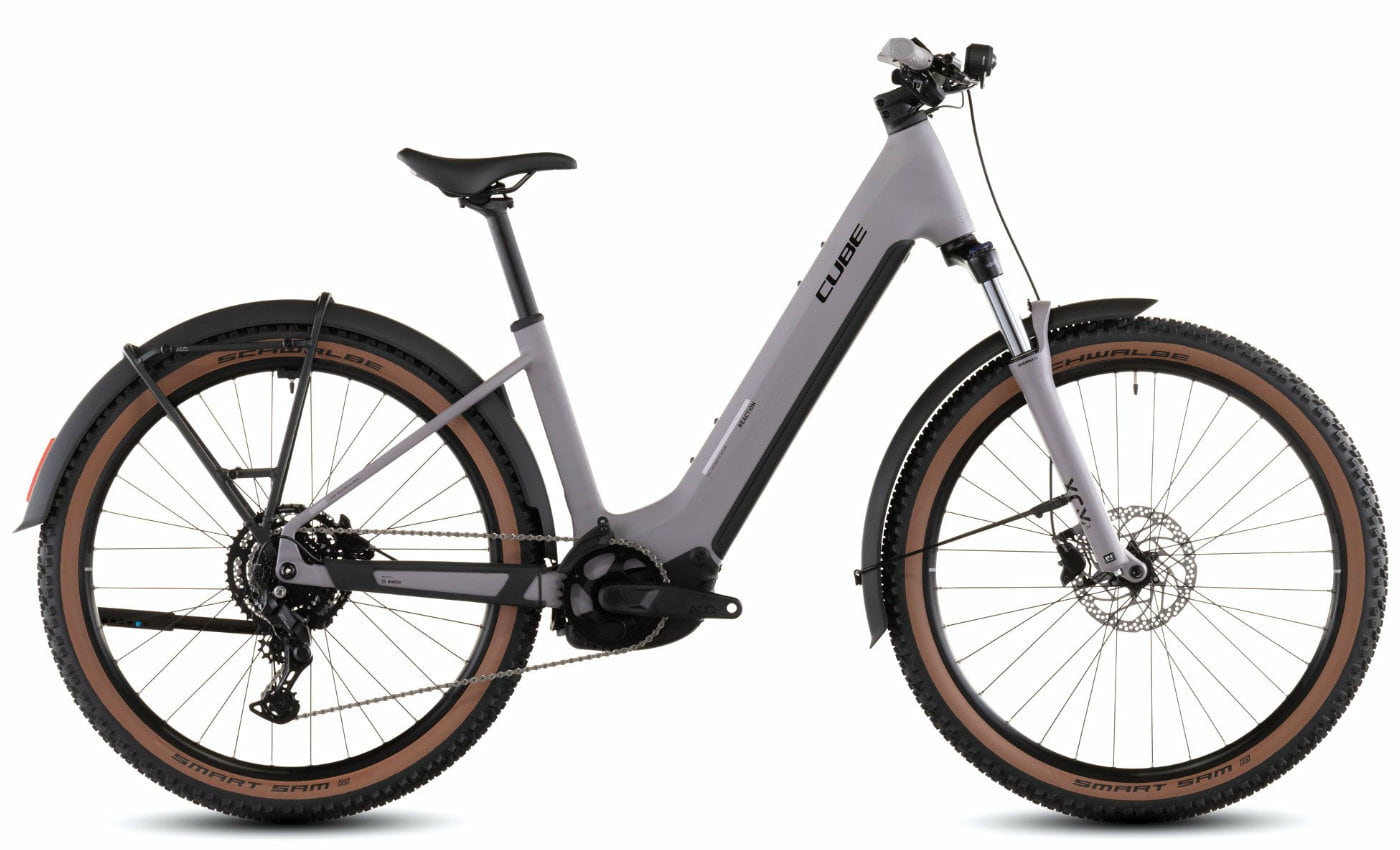 Cube Reaction Hybrid Performance 600 FE – plumgrey’n’black (Wave) Das Cube Reaction Hybrid Performance 600 FE in plumgrey’n’black mit komfortablem Wave-Rahmen verbindet modernes Design mit zuverlässiger Technik. Der tiefe Einstieg erleichtert das Auf- und Absteigen und sorgt für ein entspanntes Fahrgefühl. Mit dem kräftigen Bosch Performance Line Motor mit 75 Nm Drehmoment und dem ausdauernden PowerTube 600 Akku bist du bestens für tägliche Fahrten und längere Touren ausgestattet. Die robuste Shimano Cues 9-fach Schaltung garantiert präzise Gangwechsel, während die SR Suntour XCM34 Federgabel mit 100 mm Federweg Fahrkomfort bietet. Für Sicherheit sorgen die Shimano MT200 Scheibenbremsen. Mit der kompletten Ausstattung inklusive Lichtanlage, Schutzblechen, Gepäckträger, Ständer und integriertem Abus Schloss ist das Bike ideal für Alltag und Freizeit gerüstet. Rahmen: Aluminium Superlite Wave, Agile Ride Geometry, integrierte Kabelführung Antrieb: Bosch Performance Line, 75 Nm / PowerTube 600 Wh Schaltung: Shimano Cues 9-fach Gabel: SR Suntour XCM34 NLO Coil, 100 mm Bremsen: Shimano MT200, hydraulische Scheibenbremsen (180/180) Ausstattung: Lichtanlage, Schutzbleche, Gepäckträger, Ständer, Abus Schloss Reifen: Schwalbe Smart Sam, 2.6 Gewicht: ca. 27,5 kg Farbe: plumgrey’n’black Das Cube Reaction Hybrid Performance 600 FE in plumgrey’n’black ist das perfekte E-Bike für komfortorientierte Fahrer, die ein sicheres, vielseitiges und komplett ausgestattetes Modell für Alltag und Touren suchen.