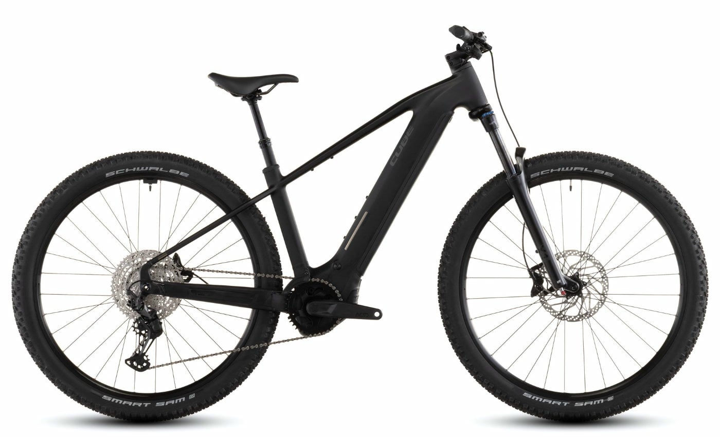 Cube Reaction Hybrid Pro 800 – blackline Das Cube Reaction Hybrid Pro 800 in blackline ist ein vielseitiges E-MTB Hardtail für sportliche Trails und lange Touren. Der robuste Aluminiumrahmen mit integrierter Kabelführung verbindet Stabilität mit einem cleanen Look. Der starke Bosch Performance Line CX Motor mit 100 Nm Drehmoment und der ausdauernde PowerTube 800 Akku sorgen für volle Unterstützung auf jeder Strecke. Mit der präzisen Shimano XT 12-fach Schaltung meisterst du jede Steigung mühelos. Die sensible SR Suntour Luftfedergabel mit 120 mm Federweg (bei 27.5: 100 mm) erhöht den Fahrkomfort, während die kraftvollen Shimano MT420 Vierkolbenbremsen für Sicherheit bergab sorgen. Eine versenkbare CUBE Dropper Post rundet das Setup ab und macht das Bike fit für anspruchsvolle Trails. Rahmen: Aluminium Superlite, Agile Ride Geometry, integrierte Kabelführung Antrieb: Bosch Performance Line CX, 100 Nm / PowerTube 800 Wh Schaltung: Shimano XT 12-fach mit Deore Schalthebel Gabel: SR Suntour X1-32 LO-R Air, 120 mm (27.5: 100 mm) Bremsen: Shimano MT420, hydraulische Scheibenbremsen (203/203) Reifen: Schwalbe Smart Sam, 2.6 Sattelstütze: CUBE Dropper Post, intern verlegt Gewicht: ca. 25,5 kg Farbe: blackline Das Cube Reaction Hybrid Pro 800 in blackline ist die ideale Wahl für sportliche Fahrer, die ein leistungsstarkes, vielseitiges und tourentaugliches E-MTB suchen.