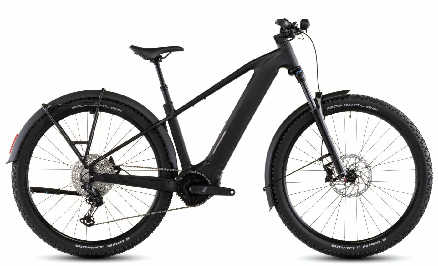 Cube Reaction Hybrid Pro 800 FE – blackline Das Cube Reaction Hybrid Pro 800 FE in blackline vereint kraftvolle Motorunterstützung, hohe Reichweite und volle Alltagstauglichkeit. Der robuste Aluminiumrahmen mit integrierter Kabelführung sorgt für eine cleane Optik, während die durchdachte Geometrie Komfort und Stabilität garantiert. Mit dem starken Bosch Performance Line CX Motor und dem neuen PowerTube 800 Akku bist du bestens für lange Touren und tägliche Fahrten gerüstet. Für präzise Schaltvorgänge sorgt die zuverlässige Shimano XT 12-fach Schaltung. Die fein ansprechende SR Suntour Luftfedergabel mit 120 mm Federweg (bei 27.5: 100 mm) schluckt Unebenheiten souverän, während die kräftigen Shimano MT420 Vierkolben-Scheibenbremsen für maximale Sicherheit bergab sorgen. Dank kompletter Ausstattung mit Lichtanlage, Gepäckträger, Schutzblechen und Ständer ist dieses E-Bike rundum touren- und alltagsbereit. Rahmen: Aluminium Superlite, Agile Ride Geometry, integrierte Kabelführung Antrieb: Bosch Performance Line CX, 100 Nm / PowerTube 800 Wh Schaltung: Shimano XT 12-fach mit Deore Schalthebel Gabel: SR Suntour X1-32 LO-R Air, 120 mm (27.5: 100 mm) Bremsen: Shimano MT420, hydraulische Scheibenbremsen (203/203) Ausstattung: Lichtanlage, Schutzbleche, Gepäckträger, Ständer Reifen: Schwalbe Smart Sam, 2.6 Gewicht: ca. 27,5 kg Farbe: blackline Das Cube Reaction Hybrid Pro 800 FE ist die perfekte Wahl für Pendler, Tourenfahrer und Alltagsradler, die ein kraftvolles, komfortables und komplett ausgestattetes E-Bike suchen.