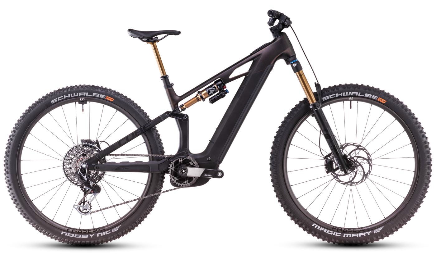 Das Stereo Hybrid ONE44 HPC SLT kommt als das ultimative All-Mountain-E-Bike auf die Trails – und mit der entsprechenden Ausstattung! Da wären die 150 mm Federweg der Fox Float 36 Factory GripX2 Federgabel und die 140 mm Federweg des Float X Factory Dämpfers. Oder die geschmeidig rollenden Schwalbe Magic Mary beziehungsweise Nobby Nic 2.4 Zoll Pneus auf Newmen Phase 30 Laufrädern. Das Ergebnis: allerbeste Bodenhaftung und Spurtreue! Den enormen Vortrieb verdankt das Bike seinem Bosch CX Motor mit bis zu 85 Nm Drehmoment, der von einem PowerTube Akku gespeist wird. Diese Power wohldosiert auf den Boden bringt der Sram 12-Gang XX Eagle Transmission Antrieb in Zusammenarbeit mit der RaceFace Era Carbonkurbel. Dabei ermöglichen progressiv verzögernde hydraulische Magura Gustav Pro Scheibenbremsen präziseste Geschwindigkeitskontrolle. Noch mehr Kontrolle beim Bergabfahren auf steilen, ruppigen Trails gefällig? Die versenkbare Sattelstütze macht’s möglich. Fazit: kompromisslos Performance auf allen Ebenen! Video: BIKES 2025: Bosch CX – CUBE Bikes Official