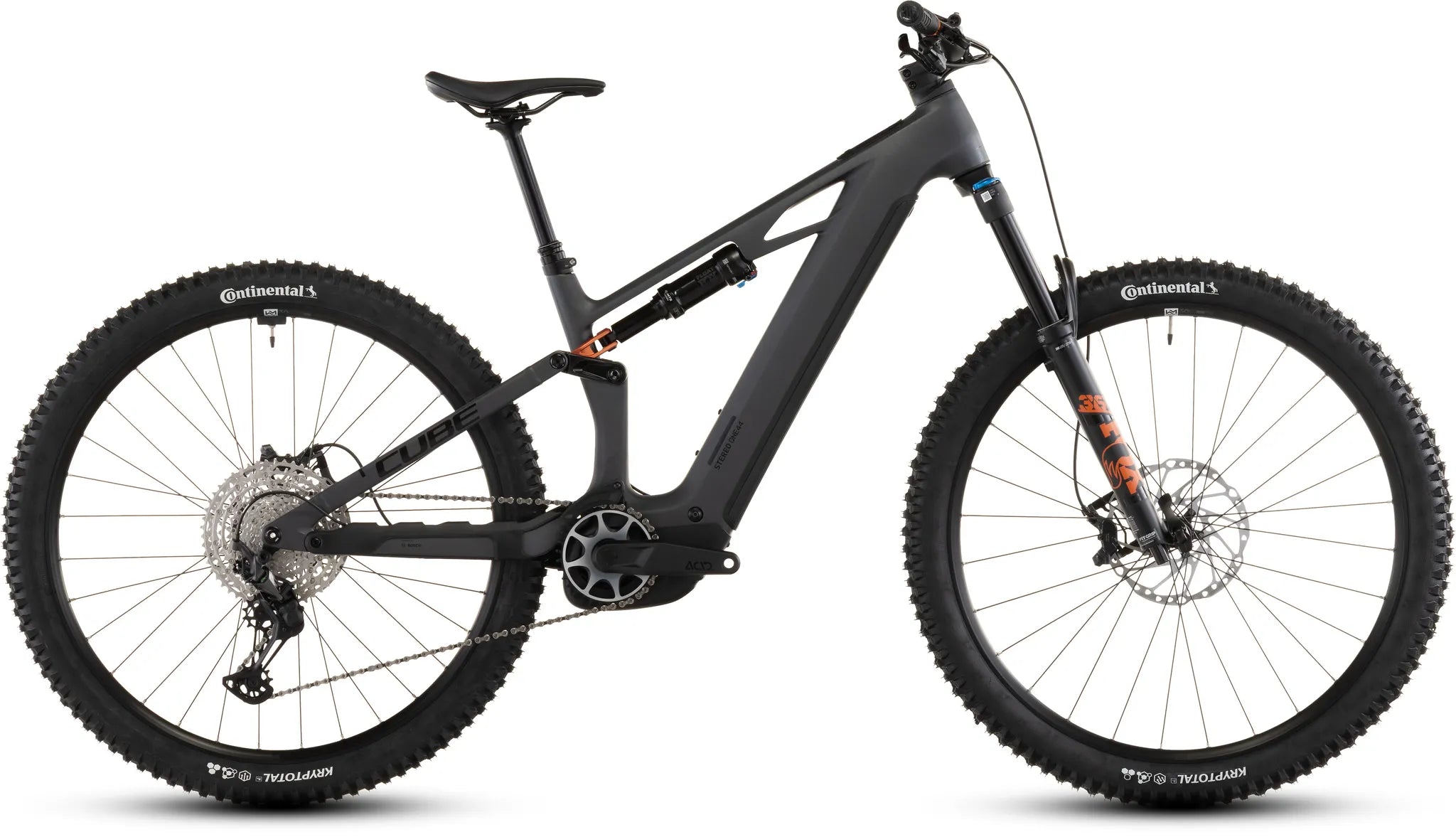 Cube Stereo Hybrid ONE44 HPC SLX 800 slabgrey’n’orange 2026Ein richtig gutes Bike ist eins, das alles mit- und vor allem mega Spaß macht – so wie das Stereo Hybrid ONE44 HPC SLX 800 mit seiner Fox 36 Float 36 Rhythm Federgabel und dem dazu passenden Float Performance Dämpfer mit 150 mm und 140 mm Federweg. Außerdem mit Newmen Performance 30 Laufrädern, auf die wir Continental Kryptotal 2.4 Zoll Pneus aufgezogen haben. Das Ergebnis: 1a-Performance und ein Fahrgefühl wie auf Wolken. In Sachen Vortrieb und Reichweite spielen der Bosch CX Motor (mit bis zu 100 Nm Drehmoment und Kiox 400C Display für den perfekten Überblick) und der 800 Wh Akku ihre Trümpfe aus. Diese Power top dosiert auf den Trail bringt die leichtgängige, superzuverlässige XT 12-fach Schaltung von Shimano. So viel Schub will aber auch top kontrolliert werden – das Spezialgebiet der bissigen, progressiv und sicher verzögernden hydraulischen Shimano XT 4-Kolben-Scheibenbremsen mit 203 mm Rotoren. Eigentlich klar, dass wir dieser Trail-Maschine auch eine versenkbare Sattelstütze mitgegeben haben. Abenteuermodus an und los!