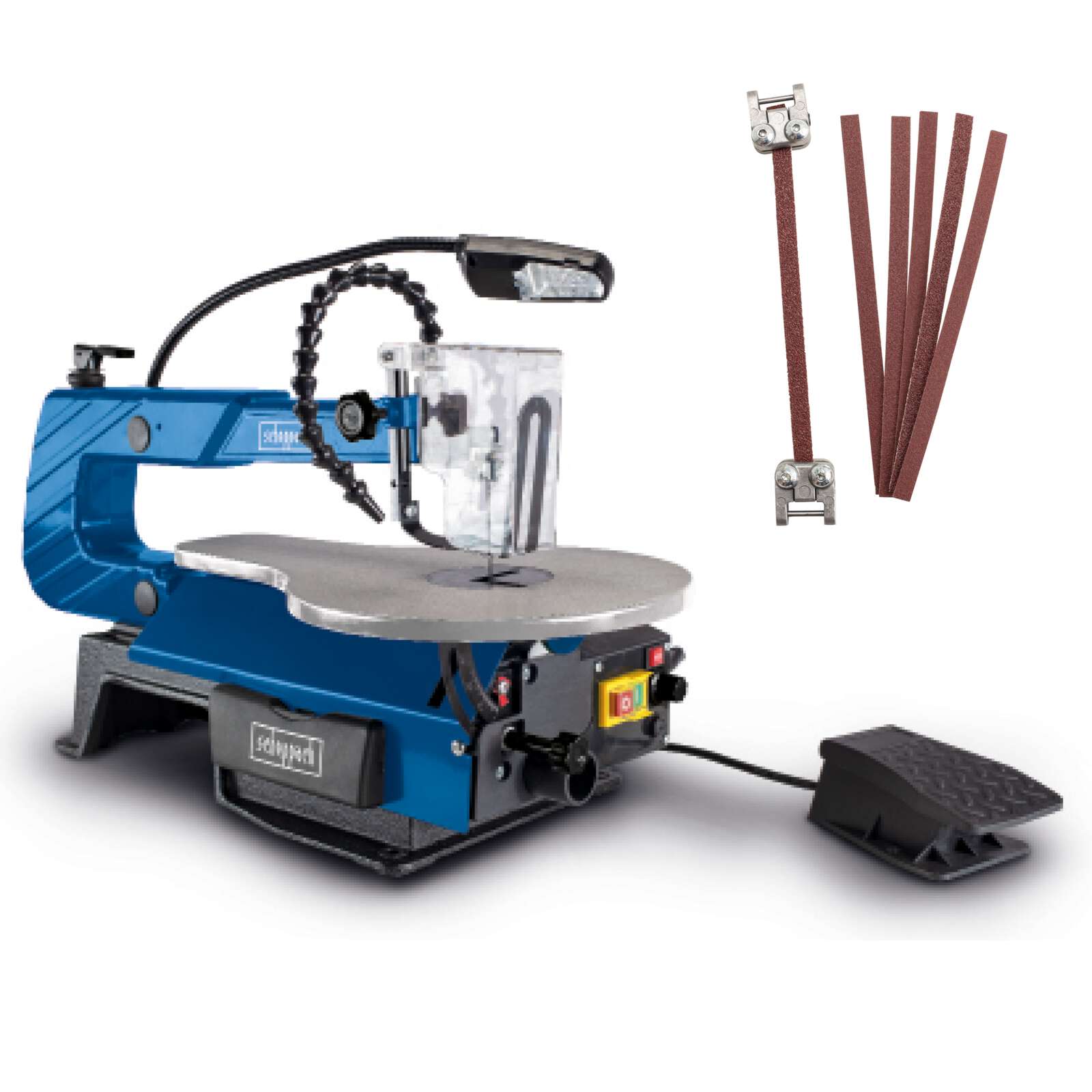 Anspruchsvolle Konturen, präzise Innenausschnitte mit feinen Details in Holz, Kunststoff, Metall, Plexiglas oder Gips – für Hobbybastler und Modellbauer ist eine Dekupiersäge ein Muss-have. Die DECO-XLS von scheppach punktet mit einer großen Arbeitsleuchte, der flexiblen Gebläsedüse und einer variablen Hubzahl, die sich bequem mit dem breiten Fußschalter steuern lässt, um beide Hände für das Werkstück freizuhaben. · Massiver Unterbau für einen stabilen Stand · Schnitthöhe/-tiefe: 50 / 406 mm · Arbeitstisch aus Aluminium verstellbar bis +45° · Variable Hubzahl 500 – 1700 min-1 und 12 mm Hubhöhe · Flexible und große LED-Arbeitslampe zur großflächigen Ausleuchtung des Arbeitsbereiches · Aufnahme von Stiftsägeblättern und Standard-Laubsägeblätter mit 127 mm Länge · Schnellspannhebel zum einfachen Sägeblattwechsel · Werkstückniederhalter für erleichtertes Führen des Werkstückes beim Sägen von Ausschnitten · Vibrationsarm für optimale und präzise Sägeergebnisse · Flexible Gebläsedüse für eine freie Sicht auf den Arbeitsbereich · Beidhändiges Führen des Werkstückes durch Steuerung des Maschinenlaufs über breiten Fußschalter Die scheppach DECO-XLS Dekupiersäge ist die perfekte Wahl, wenn es um millimetergenaue Holzausschnitte und feine Konturen geht. Das dünne Sägeblatt lässt sich präzise durch das Werkstück manövrieren. Dank der Wendigkeit gelingen damit sogar feinteilige und runde Formen. Mit 1.700 Umdrehungen pro Minute liegt die DECO-XLS im oberen Bereich der Dekupiersägen und arbeitet vergleichsweise schneller als andere Modelle. Die Sägeblattaufnahme erlaubt ein Einspannen von Sägeblättern mit oder ohne Stift mit einer Sägeblattlänge von 127 mm. Auch das Verwenden eines Rundsägeblattes ist möglich. Ein Schnellspannsystem erleichtert das Auswechseln des Sägeblattes. Die maximale Schnitthöhe beträgt 50 mm bei einer Tiefe von maximal 406 mm. Mit beiden Händen am Werkstück und ein wenig Übung wird das Führen des Werkstückes kinderleicht. Mithilfe des Fußschalters wird das Sägeblatt bedient und die Geschwindigkeit geregelt. Durch mehr oder weniger Druck auf das Fußpedal lässt sich so die Hubzahl von 500 bis 1700 min-1 variieren – für bessere Ergebnisse und mehr Sicherheit. Durch ein Winkelmaß kann die Tischneigung exakt eingestellt werden. Bis zu 45° Neigung ist möglich. Damit lassen sich nicht nur gerade und runde Schnitte in Holz, Kunststoff, Metall, Gips oder Plexiglas machen, sondern auch individuelle Winkel. Der Werkstückniederhalter sorgt auch bei Schräglage für eine einfachere und sichere Führung des Werkstückes. Eine LED-Arbeitslampe mit flexiblem Schwanenhals leuchtet den Arbeitsbereich stets optimal aus. Bei geringerem Hub, also langsameren Schnitten, kann es vorkommen, dass die Sicht durch Späne behindert wird, die nicht komplett aus der Schnittfläche entfernt werden. Da kommt das Gebläse ins Spiel – über eine flexible Gebläsedüse hat man stets freie Sicht auf den Arbeitsbereich, da Späne und Staub sofort entfernt werden, sobald sie anfallen.