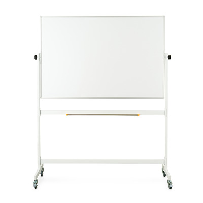 Sport-Thieme Drehgestell: Wählen Sie aus 2 Ausführungen und 2 Größen – Mit dem Sport-Thieme Drehgestell können Sie z. B. als Moderator oder Lehrer den Teilnehmern oder Schülern zügig Sachverhalte anschaulich darstellen. Dafür rollen Sie das Drehgestell einfach an die gewünschte Stelle. Halt beim Schreiben geben die 2 Feststellbremsen. Stabilität bietet der Rahmen aus lackiertem Stahl. Die abgerundeten Ecken sind zudem mit Kunststoffkappen eingefasst. Besonders praktisch ist das um 360 Grad drehbare Tafelblatt, welches wahlweise beidseitig als Whiteboard oder als Kreidetafel und in der Kombination Whiteboard und Kreidetafel erhältlich ist. Die mobile Allzwecktafel besitzt zudem eine Ablageschale für Ihre Kreide und Filzstifte, damit alles immer griffbereit ist. – Produktdetails: – Gewicht (150×100 cm): 22 kg