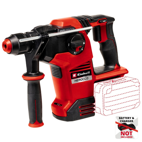 Marke: EINHELL · Farbe: rot · Serienname: Power X-Change · Gewicht: 3,37 kgTechnische Daten · Akkuspannung: 18 V · Akkutyp: Lithium-Ionen · Antriebsart: Akku · Anzahl Akkus: 0 · Drehzahl (max.): 5300 U/minMaßangaben · Höhe: 14,3 mm · Länge: 54,5 cm · Breite: 41 cmMaterialangaben · Material: Kunststoff Funktionen und Ausstattung · Ladegerät (inkl.): Nein Lieferung · Akku enthalten: Nein · Lieferumfang: cordless rotary hammer
