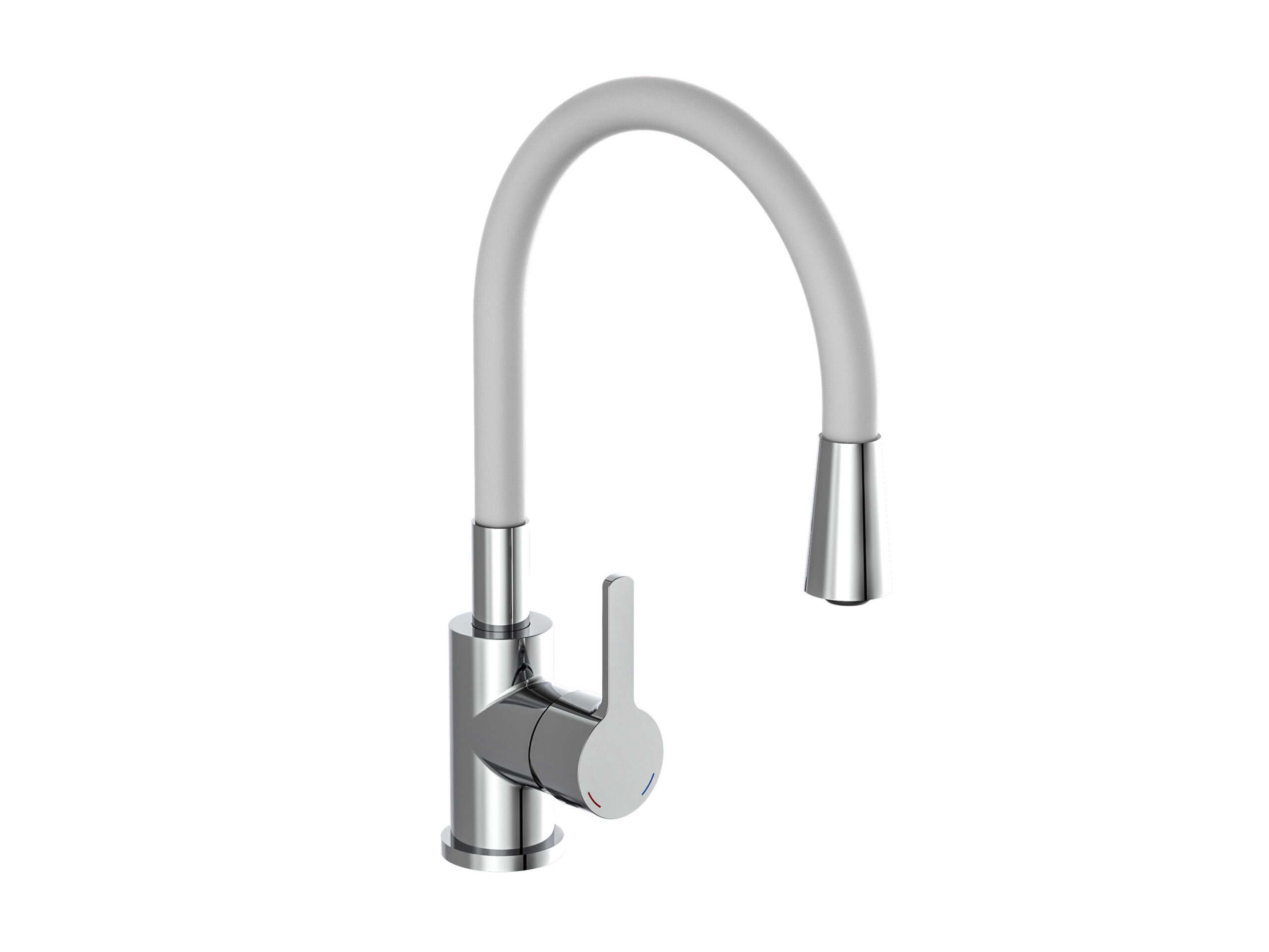 Elegante Eisl Spültischarmatur farbigem Rundbogenauslauf – Eyecatcher im Küchenbereich Der flexible Auslauf ist in alle Richtungen biegsam für einen erweiterten Aktionsradius Nachhaltiger Wasserhahn Küche mit Cold-Start Funktion – nur Zufluss von Kaltwasser in der Hebelmittelstellung (senkrechte Position) des Einhandmischers – ein kleiner Beitrag für die Umwelt Eco Klick Funktion: Durch die zweistufige Hebelbedienung kann die Wassermenge reduziert und bis zu 50% Wasser gespart werden Vielseitiger Einsatz: Einhebelmischer mit flexiblem Auslauf und 360° Schwenkbereich bietet viele Einsatzmöglichkeiten; auch ideal für Doppelspülbecken Mischbatterie Küche mit geräuscharmer; auswechselbarer Qualitäts-Kartusche mit langlebigen, keramischen Dichtungen zur präzisen Regelung der Durchflussmenge und der Wassertemperatur Der Wasserhahn ist auch für Durchlauferhitzer geeignet, ein fest installiertes Gerät zur Warmwasserbereitung nach Bedarf (für Untertischgeräte nicht geeignet) Inklusive vollständigem Montagematerial und einer mehrsprachigen, bebilderten Montageanleitung für eine mühelose Installation Farben: Chrom/grau, Edelstahl-Optik/grau, Edelstahl-Optik/schwarz Material Messing beschichtet, Kunststoff Maße ca. B 5,2 x H 34,4 x T 24,6 cm Gewicht 1,46 kg Lieferumfang 2 x flexibler Anschlussschlauch, ca. 40 cm