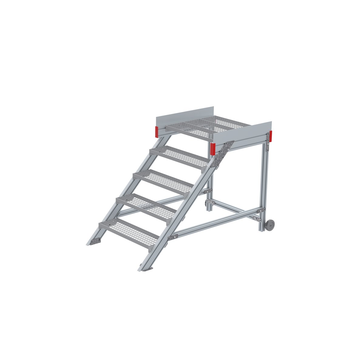 Anstieg 45° mit 5 Stufen 800mm breiteuroline – der sichere AufstiegAnstiege aus Stahl Gitterrost sind für viele verschiedene Einsatzbereiche geeignet. Beispielsweise zum Anstellen an Container, Wartung von Maschinen oder Zugang zu LKW-Ladeflächen. Durch 2 Rollen am Stützteil können die Anstiege einfach verschoben werden und dadurch auch für verschiedene Einsatzbereiche benutzt werden.Der Steigwinkel von 45° sorgt für einen bequemen Aufstieg. 3 Standard-Stufenbreiten (600 mm, 800 mm, 1000 mm) finden Sie in unseren Empfehlungen verlinkt.Als Standard – Stufenausführungen haben Sie die Wahl zwischen Stufen in Alu-gerieft oder Stahl-Gitterrost. Auf Wunsch bieten wir Ihnen auch gerne abweichende Stufenausführungen an: Alu-Gitterrost, Alu-Lochblech oder Stahl-Lochblech. Gerade bei Nutzung im Außenbereich kann eine andere Stufenausführung sinnvoll sein. Auch Podestverlängerunge…