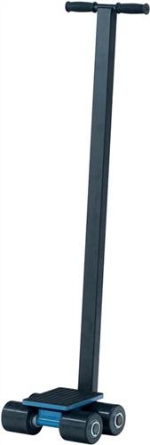 Fahrwerk lenkbar Trgf.3 t 4 Lastrollen · lenkbar · mit Zugdeichsel und drehbarer Tragplatte für Kurvenfahrten · stabile Stahl Schweißkonstruktion, pulverbeschichtet, brillantblau, RAL 5007 · Tragplatte mit rutschhemmender Gummiauflage · praktische