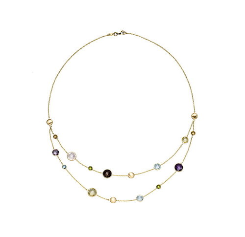 Traumhaft schönes Collier Gelbgold 585 mit farblich abgestimmten Edelsteinen in dezenter Goldfassung und mattierten Goldelementen.