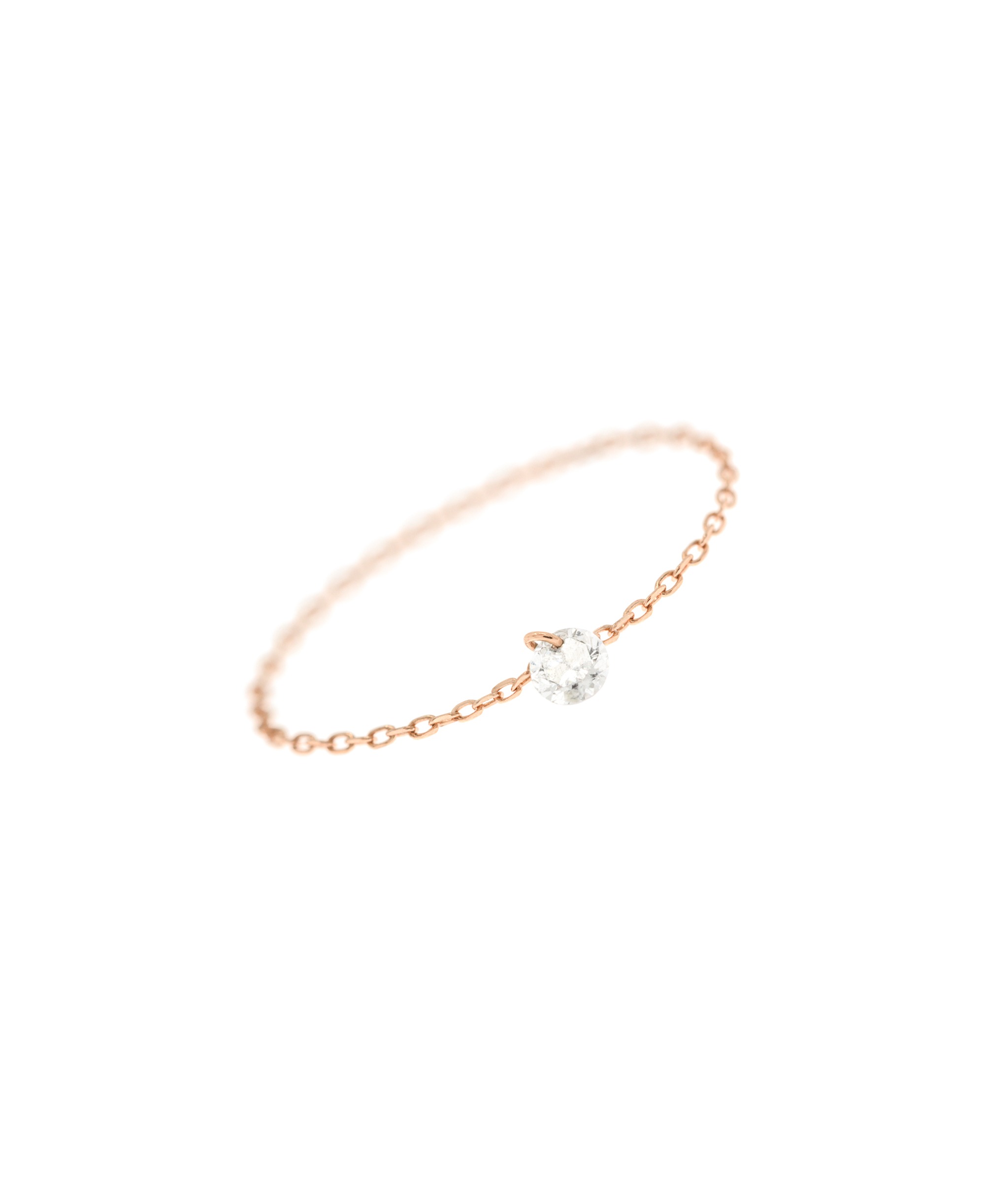THE BEAUTY OF SIMPLICITY – im Mittelpunkt dieses zarten Kettenrings aus 14k Roségold steht ein schwebender 0,068 Karat Diamant, der bei jeder Bewegung elegant funkelt – perfekt für dezente Statements. Dieser Ring lässt sich durch vorsichtiges Rollen an- und ablegen. Um einen besonders hohen Tragekomfort zu bieten, ist er eng am Finger anliegend.