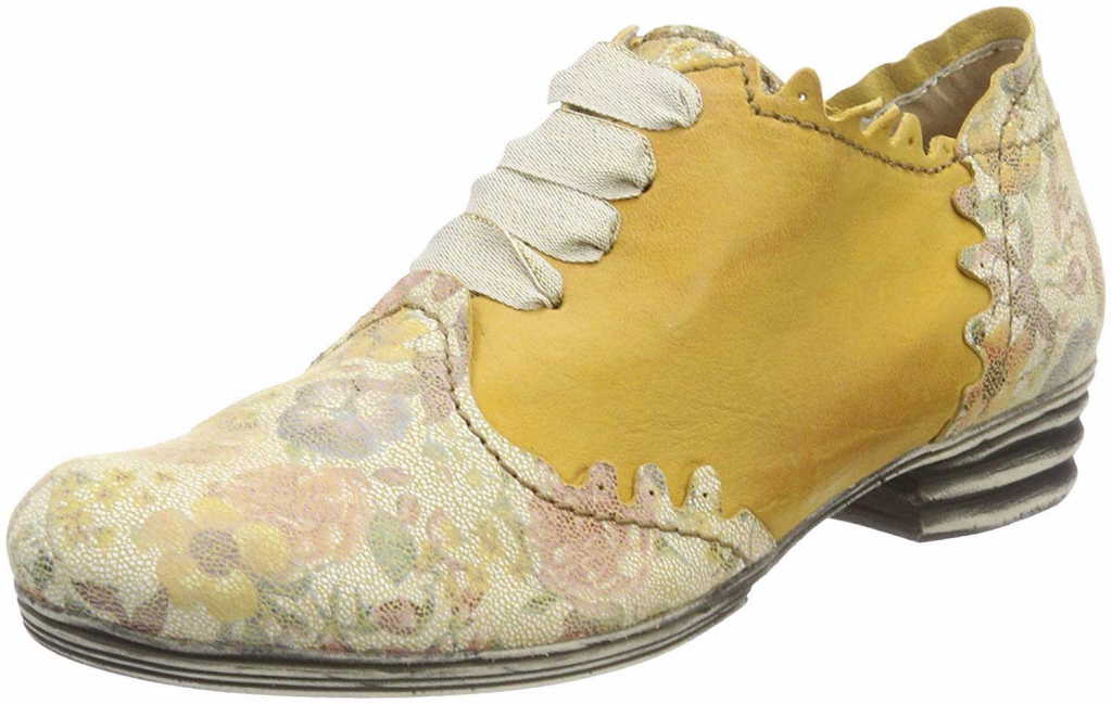Schöner Schnürschuh von der Topmarke Rovers aus einem feinen hochwertigem Ledermaterial in der Farbe gelb. Innen ist der Schuh mit einem cromfrei gegerbtem Leder ausgestattet. Die Decksohle ist aus echtem Leder verarbeitet und bietet optimalen Halt und Luftdurchlässigkeit. Der Schuh hat eine normale Weite. Der stabile Blockabsatz hat eine Höhe von cirka 2 cm. Die weiche PU-Sohle schont die Gelenke und federt jeden Ihrer Tritte optimal ab. Die elegante Sohle des Schuhs verleiht eine zeitlose Optik und man kann den Schuh zu jeder Gelegenheit tragen. Der Artikel verfügt über einen Schnürverschluß. Die runde Schuhspitze macht den Schuh elegant am Fuß und hat genügend Platz für Ihren Fuß und Ihre Fußzehen. Dieser Schuh hat einen weichen Gehcomfort. Die Schuhe sind ideal für die Freizeit, da Comfort, Tragegefühl und Verarbeitung so ausgerichtet sind, dass Sie den ganzen Tag ohne Probleme tragen können.