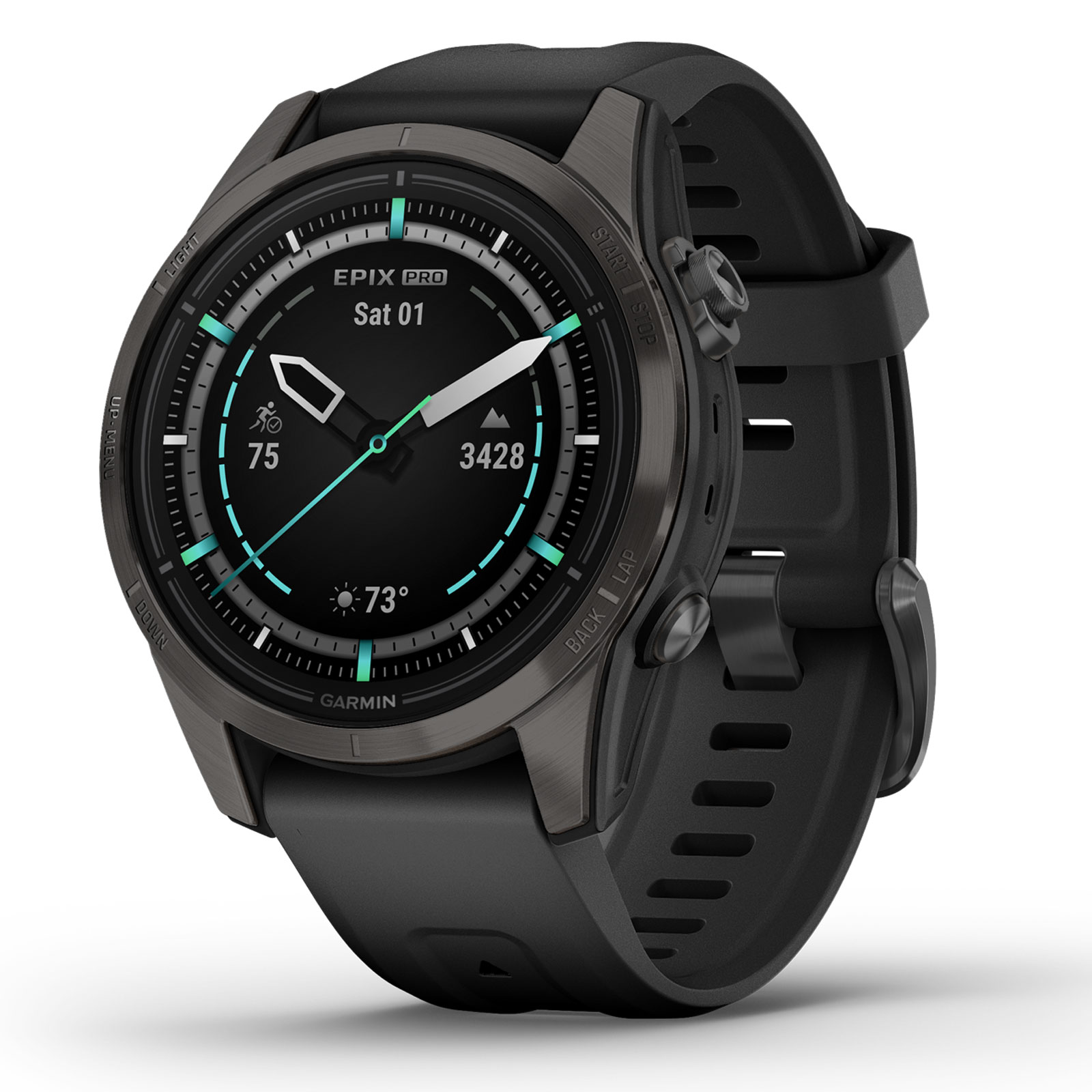 DAS BESTE. OHNE KOMPROMISSE. Die epix™ Pro mit brillantem AMOLED Touchdisplay und kratzfestem Saphirglas. Die neueste Generation der Multisport-Smartwatch kommt mit einer Akkulaufzeit von bis zu 10 Tagen im Smartwatch-Modus, einer integrierten LED-Taschenlampe sowie Trainings- und Gesundheitsfunktionen – für deine beste Performance. BRILLANTES AMOLED TOUCHDISPLAY BIS ZU 10 TAGE AKKULAUFZEIT IM SMARTWATCH-MODUS INTEGRIERTE LED-TASCHENLAMPE ERWEITERTE TRAININGSWERTE UND ERHOLUNGSINFOS GESUNDHEITS- UND FITNESSFUNKTIONEN SATIQ™️ TECHNOLOGIE UND MULTI-FREQUENZ EMPFANG LANGE AKKULAUFZEIT Durch einen extrem effizienten Energieverbrauch liefert die epix Pro eine Akkulaufzeit von bis zu 10 Tagen im Smartwatch-Modus oder bis zu 20 Stunden im GPS-Modus. INTEGRIERTE LED-TASCHENLAMPE Unterschiedliche Intensitätsstufen und ein rotes Sicherheitslicht verschaffen dir einen besseren Überblick beim Training im Dunkeln und dienen bei Bedarf als praktische Beleuchtung. Der Stroboskopmodus kann sogar deiner Schrittfrequenz entsprechen. HILL SCORE Der Hill Score zeigt dir deine Entwicklung im Bergauflaufen, basierend auf deinem Trainingsverlauf sowie deiner VO2max. Zusätzlich wird dir ein Wert für die Fähigkeit steile Anstiege zu laufen sowie für deine Laufausdauer bei langen Anstiegen berechnet. AUSDAUERWERT Der Ausdauerwert zeigt die Entwicklung deiner Ausdauer und die Fähigkeit längere Belastungen unter Berücksichtigung aller aufgezeichneten sportlichen Aktivitäten zu absolvieren. Hierbei werden u.a. deine kurz- und langfristigen Trainingsbelastungen sowie dein VO2max Wert genutzt, um den Fortschritt deiner Ausdauer sportartenübergreifend zu messen. EXKLUSIVES DESIGN Widerstandsfähiges, sportliches Design mit einem hellen, 1,2-Zoll großen kratzfestes AMOLED-Display, einen reaktionsschnellen Touchscreen, herkömmliche Tasten und ein 42mm-Metallgehäuse aus faserverstärktem Polymer mit einer Lünette und einer Gehäuseabdeckung aus Titan. Die Uhr wurde nach US-Militärstandards im Hinblick auf thermische Leistung, Stoßfestigkeit und Wasserdichtigkeit getestet. ALLE DATEN IM BLICK Beginne jeden Tag mit einem anpassbaren Morning Report und sieh dir eine Tagesübersicht deiner Gesundheits- und Fitnessinformationen an. Die Trainingsbereitschaft kombiniert deine aktuelle Trainingsbelastung mit weiteren Gesundheitsdaten wie Erholung (1), Schlaf oder Stress und ordnet deine Bereitschaft fürs nächste Training individuell ein. PERFORMANCE LAUFZEIT-PROGNOSE Erhalte eine Berechnung deiner potenziellen Pace für einen 5K, 10K, Halbmarathon oder Marathon. PACEPRO™️ Plane die Strategie für deinen Wettkampftag mit GPS-basierten Pace-Informationen für eine bestimmte Strecke oder Distanz. CLIMBPRO: ANSTIEGE RICHTIG EINTEILEN Sieh Echtzeitinformationen zu den aktuellen und nächsten Anstiegen auf heruntergeladenen Strecken. AN STEIGUNG ANGEPASSTE PACE Finde heraus, was deine Laufpace wäre, wenn du mit derselben Anstrengung auf flacher Strecke oder einen Anstieg laufen würdest. TRAININGSBEREITSCHAFT Erhalte gleich morgens einen Trainingsbereitschaftswert, für den Schlafqualität (1), Erholung, Trainingsbelastung u.v.m. herangezogen werden. Schon weißt du, ob du heute hart trainieren kannst oder dich etwas zurückhalten solltest. TRAININGSZUSTAND Erhalte Insights, um zu wissen, ob du beim Training deine Form aufbaust, in Höchstform oder aber ermüdet bist. PHYSIOLOGISCHE MESSWERTE Schätze deine Leistung ein. Verwende dazu erweiterte Trainingswerte wie VO2max, Trainingsbelastung u.v.m. STAMINA RESTENERGIE Stamina verfolgt deine Leistung beim Lauf oder Radtraining und zeigt dir die verfügbare Energie, die dir während deiner körperlichen Aktivität zur Verfügung steht, um eine vorzeitige Erschöpfung zu vermeiden. TÄGLICHE TRAININGSEMPFEHLUNGEN Zeige für die ganze Woche die täglichen Trainingsvorschläge an. Nach jedem Lauf- oder Radfahrtraining werden die Angaben angepasst. ERHOLUNGSZEIT Finde heraus, wie lange du dich erholen solltest, bevor du dein nächstes intensives Workout absolvierst. Ausschlaggebend ist dabei dein letztes Training. WETTKAMPF KALENDER Finde mit Trainingstipps, personalisierten täglichen Trainingsempfehlungen u.v.m. heraus, wie lange du dich auf deinen nächsten Wettkampf vorbereiten musst. RUNNING POWER AM HANDGELENK Sieh dir an, wie viel Leistung du auf den Trail oder die Straße aufbringst. Dann kannst du deine Kräfte besser einteilen und noch optimaler trainieren. GARMIN COACH Erhalte kostenlose, adaptive 5K-, 10K- und Halbmarathon- Trainingspläne von erfahrenen Trainer*innen. AKTIVITÄTEN ZEICHNE JEDE AKTIVITÄT AUF Verwende vorinstallierte Aktivitätsprofile, um basierend auf deinen Aktivitäten Daten und Insights zu erhalten. Du kannst jetzt Aktivitäten für Teamsportarten aufzeichnen, wie Fußball, Football und mehr. HIIT WORKOUTS Zeichne deine HIIT Workouts auf, darunter AMRAP, EMOM, Tabata oder benutzerdefinierte Trainings. ANIMIERTE WORKOUTS Folge animierten Cardio-, Kraft-, Yoga- und Pilates-Trainings direkt auf dem Display deiner Smartwatch. SKITOUREN UND SPLITBOARDTOUREN Erhalte Daten zu Aufstieg und Abfahrt sowie Messwerte wie Schrittfrequenz, Schrittlänge und Neigung. XC SKI DYNAMICS Miss deine Trainingsbelastung bei Kopplung mit einem HRM-Pro™️ Plus Herzfrequenz-Brustgurt (separat erhältlich). INTEGRIERTE SURF APP Zeichne die Anzahl der gesurften Wellen, die erreichte maximale Geschwindigkeit, die zurückgelegte Strecke u.v.m. auf. SURFLINE® KAMERA Erstelle mit Surfline Sessions™️ ein Video jeder Welle, die du vor einer Surfline Kamera reitest. Im Surfline Widget siehst du Informationen zu Gezeiten, Wellenhöhe, Wind- und Brandungsbewertung für die fünf nächstgelegenen Surfspots (2). MTB DYNAMICS Verfolge die Details deiner Tour mit speziellen Daten zu Grit® und Flow™️. NAVIGATION OUTDOOR MAPS+ Mit einem optionalen Abonnement für Outdoor Maps+ hast du Zugriff auf Premium-Karten (Abdeckung nur für die USA) und Satellitenbi