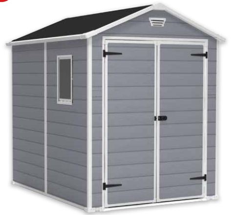 Gerätehaus Gartenhaus Kunststoff mit Doppeltür inklusive Boden, langlebig und pflegeleicht. Doppelwandig, abschließbar, mit Fenster und Lüftungsgitter. Leicht zusammenzubauen. Gesamtfläche 4,8m3. Werbevideo zu diesem Gerätehaus Kunststoff.