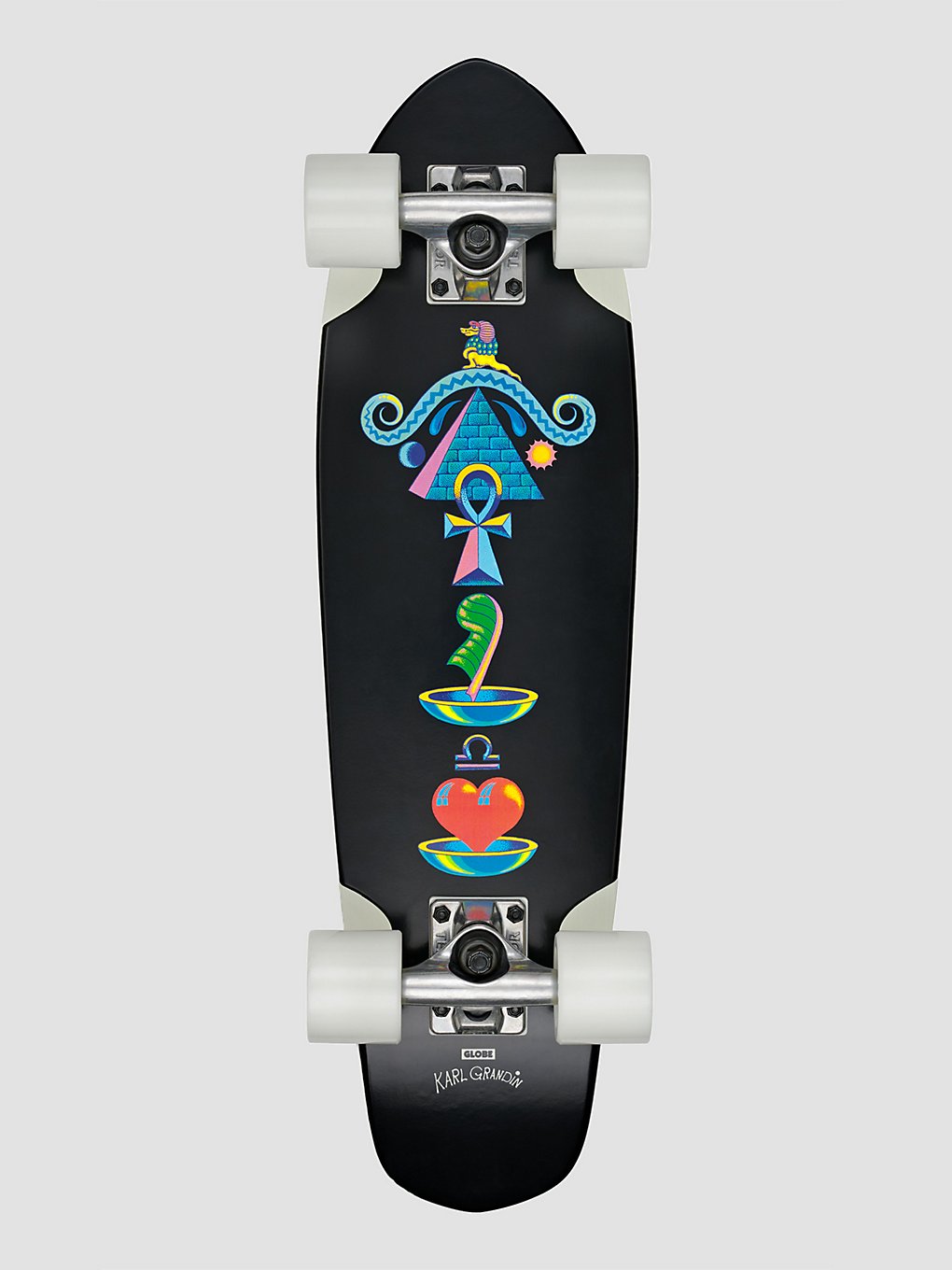 Ein Cruiser, der im Dunkeln leuchtet. Der Globe Blazer 26″ bietet ein komfortables Fahrgefühl auf jedem Untergrund. Cruiser Skateboards besitzen die perfekten Eigenschaften, um schnell und gemütlich von Punkt A nach B zu rollen. Durch die kompakte Größe hast du das Board immer dabei. Das praktische Kicktail ermöglicht es dir, schnell deine Fahrtrichtung zu ändern oder Tricks zu poppen.Dieses Modell verfügt über ein im Dunkeln leuchtendes Deck und Rollen, mit Grafiken des Künstlers Karl Grandin.