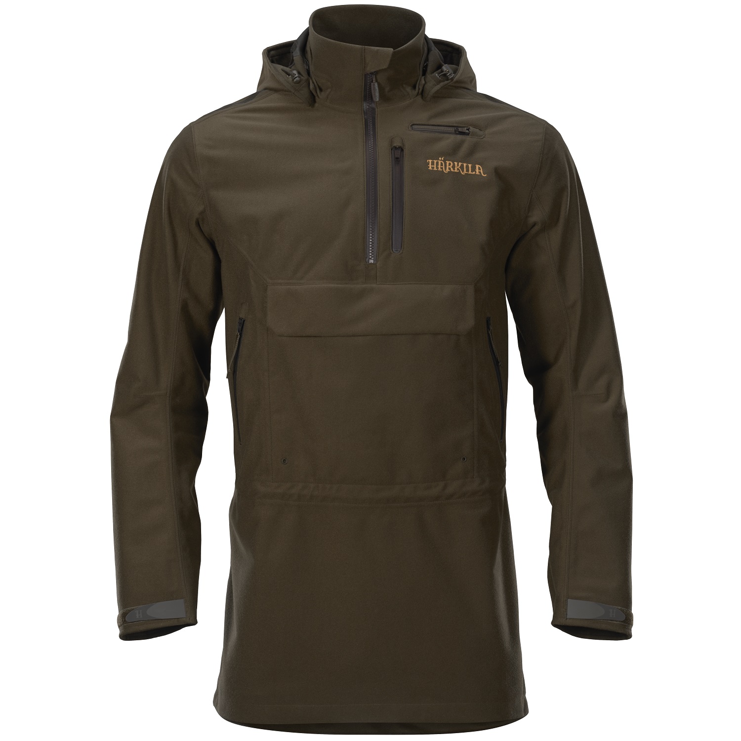 Neben der normalen Mountain Hunter Jacke bietet Härkila mit dem Anorak ein,gerade im skandinavischen Gebiet beliebtes Kleidungsstück an. Mit dem Smock,der auch als Windbreaker für die Jagd genutzt wird, bist du bestens vor Regen undWind geschützt. Gerade bei der aktiven Jagd benötigt man eine zuverlässige undpraktische Außenhaut, die einen nicht zum Schwitzen bringt.