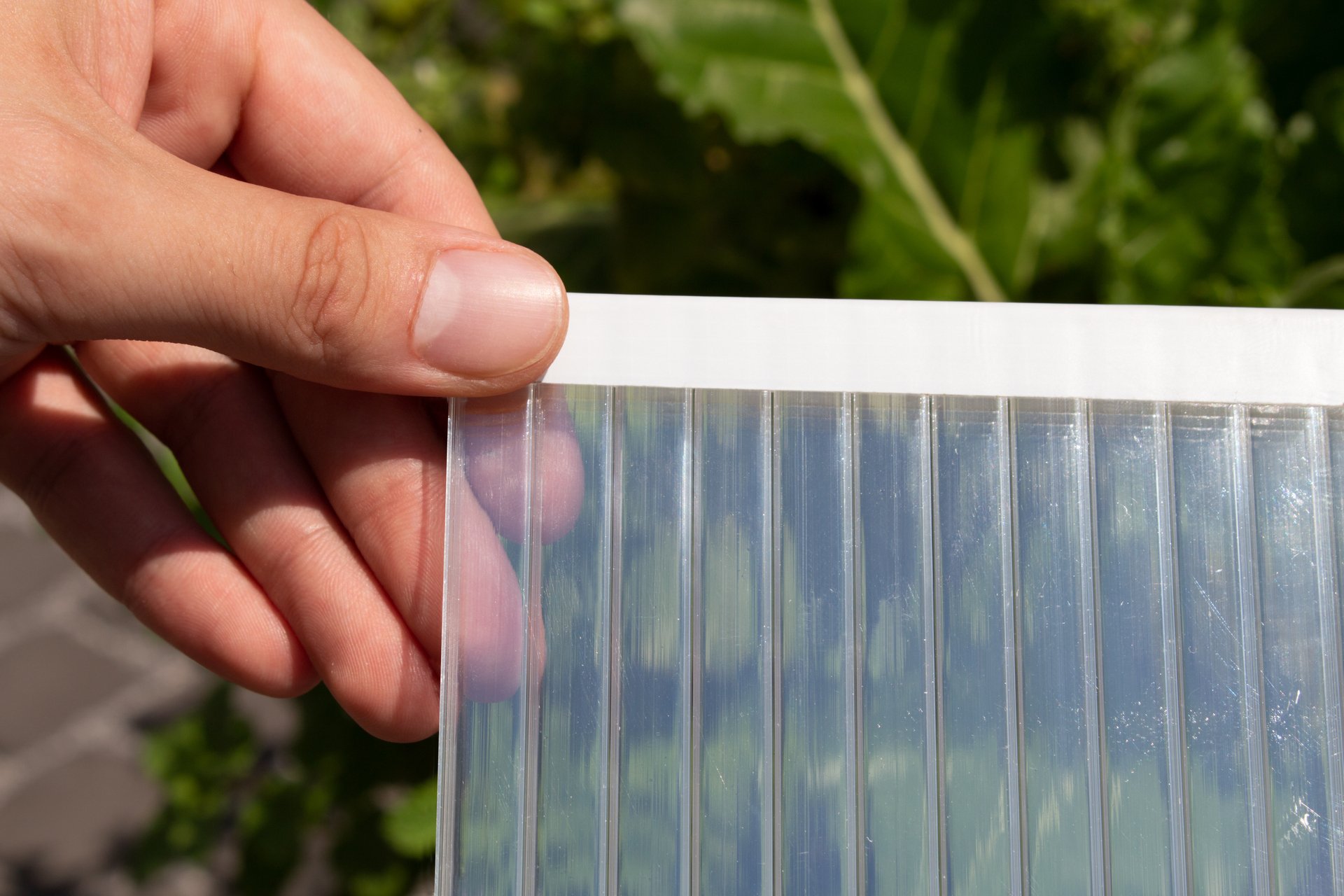 Mit der HKP Abdichtung von Pergart dichten Sie professionell die offenen Seiten der Polycarbonatplatte im Gewächshaus ab – und verlängern so die Lebensdauer der Hohlkammerplatte (HKP): Das Vliesmaterial mit Kunststoffbeschichtung schirmt das Innere der Platte von Insekten, Staub und Flüssigkeiten ab, lässt aber den Gasaustausch und den Abfluss von Wasser zu. So ist die HKP lange von Grünalgenbefall geschützt, ihre Transparenz bleibt erhalten.