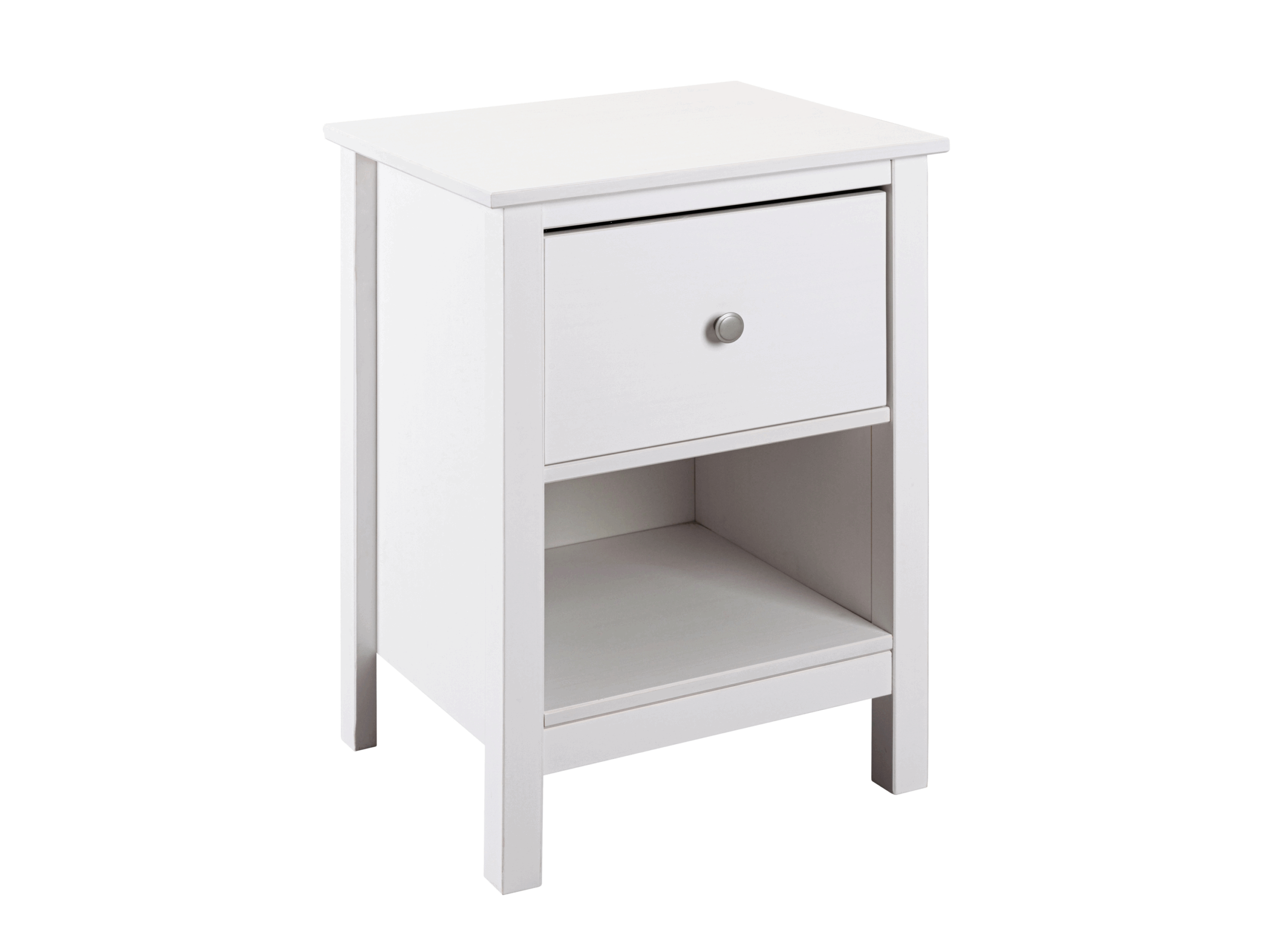 Inter Link Nachttisch “Ivyna”; mit geräumiger Schublade Bringe natürlichen Charme und praktische Ordnung in dein Schlafzimmer – mit dem stilvollen Nachttisch Ivyna aus massivem Kiefernholz. Die weiß lackierte Oberfläche lässt die feine Holzmaserung dezent durchscheinen und verleiht dem Möbelstück eine warme, natürliche Ausstrahlung mit modernem Touch. Der Ivyna Nachttisch kombiniert Funktionalität mit schlichter Eleganz: Eine geräumige Schublade mit edlem Knopfgriff aus silbernem Metall bietet Platz für persönliche Gegenstände; während die offene Nische ideal für Bücher; Körbe oder Deko genutzt werden kann. Die stabile Ablagefläche eignet sich hervorragend für eine Nachttischlampe oder einen Wecker. Der Ivyna Nachttisch ist die ideale Ergänzung für jedes Schlafzimmer – ob als klassischer Nachttisch, als kleiner Beistelltisch oder charmante Nachtkommode. Produktmerkmale table{width:100%;}td{padding-right: 30px; padding: 0.5rem; border-bottom: 0.0625rem solid #e3e4e5;} tr:nth-child(odd) {background-color: #F2F3F4;} Style: Ivyna Funktion: – Farbe: weiß Material: Kiefer Massivholz Max. Belastung: – Maße: ca. L 47 x B 40 x H 66 cm Gewicht: ca. 10,90 kg