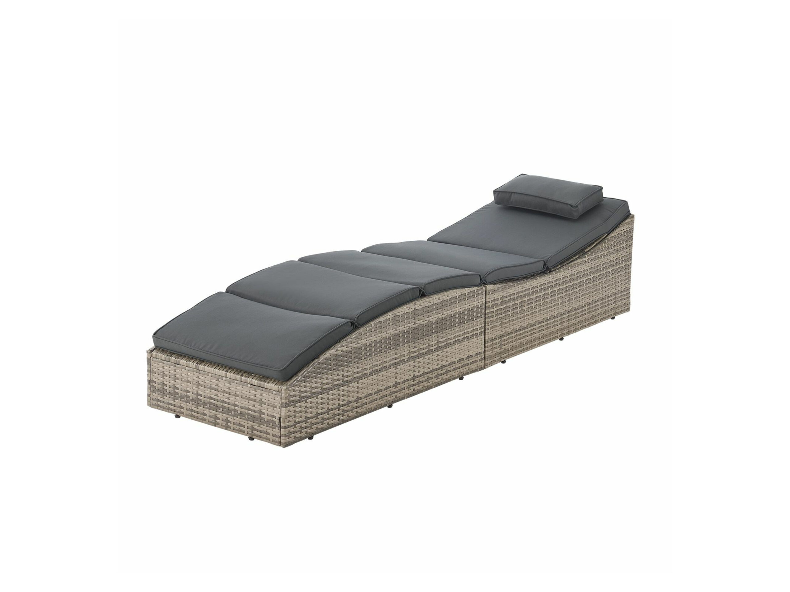 Juskys Faltbare Sonnenliege “Lamia”; in Rattanoptik Auf der faltbaren Polyrattan Sonnenliege Lamia mit dicker Auflage und verstellbarem Kopfteil genießt du den Sommer in vollen Zügen. Gönne dir eine Auszeit auf der ergonomischen Outdoor Sonnenliege, die sich perfekt für Terrasse, Balkon oder Garten eignet. Dank des stabilen Stahlgestells ist eine hohe Belastbarkeit bis zu 160 kg möglich. Und mit der klappbaren Funktion lässt sich die Liege im Handumdrehen auf- und abbauen. Durch diese Baumweise ist sie platzsparend verstaubar. Die ergonomische Form und das dicke Polsterkissen sorgen für optimalen Halt und Gemütlichkeit. Für stetige Sauberkeit ist der Kissenbezug waschbar. Ein Highlight ist das verstellbare Kopfteil mit 5 Positionen. Stelle es dir einfach nach deinen Wünschen ein und finde so die perfekte Position zum Relaxen. Die gemütliche Polyrattan Sonnenliege bietet nicht nur Komfort, sondern auch eine hohe Belastbarkeit. Das Stahlgestell macht die Balkonliege stabil. Die Gartenliege in Rattanoptik überzeugt durch ihre intelligente Bauweise. Bei Nichtgebrauch lässt sich die Liege einfach zusammenklappen und verstauen. Produktmerkmale table{width:100%;}td{padding-right: 30px; padding: 0.5rem; border-bottom: 0.0625rem solid #e3e4e5;} tr:nth-child(odd) {background-color: #F2F3F4;} Serie: Lamia Funktion: ergonomische Form, verstellbares Kopfteil in 5 Positionen, klappbare Funktion Witterungsbeständig: ja Material: Liege: Polyrattan, Stahl (pulverbeschichtet), Kunststoff; Auflage: Stoff (100 % Polyester) Max. Belastung: ca. 160 kg Maße: ca. L 200 x B 60 x H 40 cm Gewicht: ca. 15,5 kg