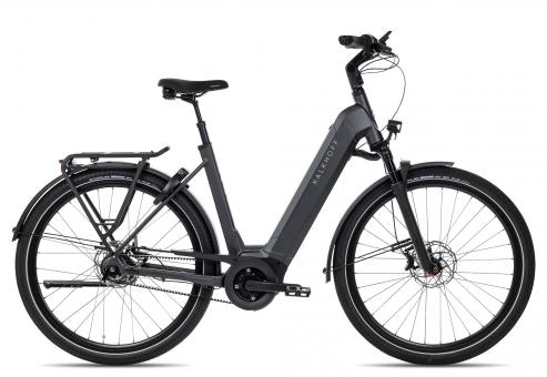 Ein klasse Antriebspaket für anspruchsvolle Fahrten mit vielen Steigungen., Ein besonders wartungsarmes City-E-Bike mit starker Motorleistung für ein Gesamtgewicht von 170 kg: Kalkhoff Image 5+ Advance., Ein bereits montiertes Rahmenschloss ist sogar auch schon dabei., Mit der SR Suntour Mobie34 Luft-Federgabel, den hydraulischen Tektro 4-Kolben Scheibenbremsen und der breiten Schwalbe Big Ben Plus Bereifung bist du auch auf schlechten Wegen gut unterwegs., Dank der Kombination aus Gates Riemenantrieb und Shimano Nexus 5-Gang Nabenschaltung bekommst du hier ein besonders pflegeleichtes Antriebspaket für innerstädtische Fahrten und entspannte Überland-Ausflüge., Zusätzlichen Komfort bieten dir die aufrechte Sitzposition und die gefederte Sattelstütze., Das elektrische Antriebspaket des Kalkhoff Image 5+ Advance kombiniert den starken Bosch Performance Line Motor mit dem großen 625 Wh Akku und dem feinen Intuvia 100 Display., Natürlich