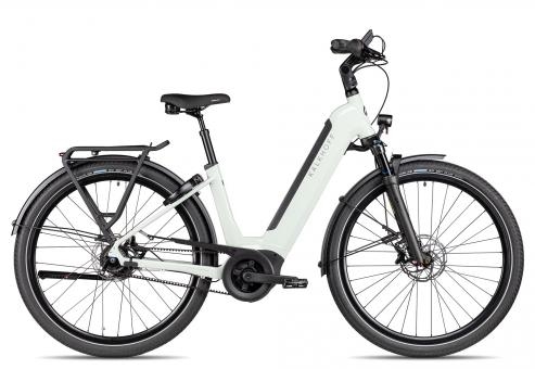 Ein klasse Antriebspaket für anspruchsvolle Fahrten mit vielen Steigungen., Ein besonders wartungsarmes City-E-Bike mit starker Motorleistung für ein Gesamtgewicht von 170 kg: Kalkhoff Image 5+ Advance., Ein bereits montiertes Rahmenschloss ist sogar auch schon dabei., Mit der SR Suntour Mobie34 Luft-Federgabel, den hydraulischen Tektro 4-Kolben Scheibenbremsen und der breiten Schwalbe Big Ben Plus Bereifung bist du auch auf schlechten Wegen gut unterwegs., Dank der Kombination aus Gates Riemenantrieb und Shimano Nexus 5-Gang Nabenschaltung bekommst du hier ein besonders pflegeleichtes Antriebspaket für innerstädtische Fahrten und entspannte Überland-Ausflüge., Zusätzlichen Komfort bieten dir die aufrechte Sitzposition und die gefederte Sattelstütze., Das elektrische Antriebspaket des Kalkhoff Image 5+ Advance kombiniert den starken Bosch Performance Line Motor mit dem großen 625 Wh Akku und dem feinen Intuvia 100 Display., Natürlich
