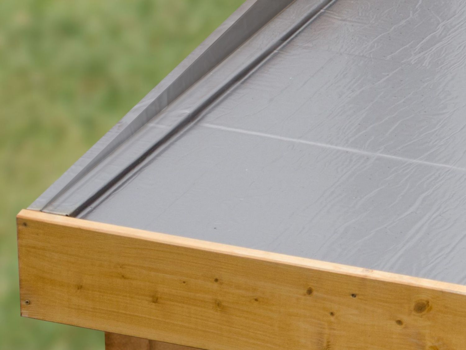 Karibu Dachfolie für Gartenhäuser und Geräteschuppen Mit Hilfe dieser selbstklebenden dunkelgrauen Dachfolie für Flachdachhäuser kannst du dein Gartenhaus ganz einfach und sicher vor Witterung schützen. Das kaltselbstklebende Elastomer-Bitumen mit verstärkter Aluminiumfolie und silikonbeschichteter Abziehfolie wird ganz leicht direkt auf staubfreiem Untergrund (z. B. Holzplatten) aufgebracht. Durch das langlebige und reißfeste Material mit hoher UV- und Farbbeständigkeit ist dein Gartenhaus optimal gegen äußere Wettereinflüsse geschützt. Einsatzbereich Zur Dacheindeckung von untergeordneten Dächern, wie z. B. von Carports, Gartenhäusern, Geräteschuppen usw. Material Oberseitige Deckschicht und Träger: UV-beständiger Aluminiumverbund Unterseitige Deckschicht: Thermoplastischer Bitumenklebstoff mit silikonisierter Abziehfolie Technische Details Höchstzugkraft: min. Länge ≥ 200 N | Breite ≥ 200 N Wärmestandfestigkeit bei 80°C: min. Wasserdampf-Durchlässigkeit: min. > 1500 m Brandklasse: E Maße je Rolle 5 m 2 L x B: 5 x 1 m Stärke: 1,1 mm
