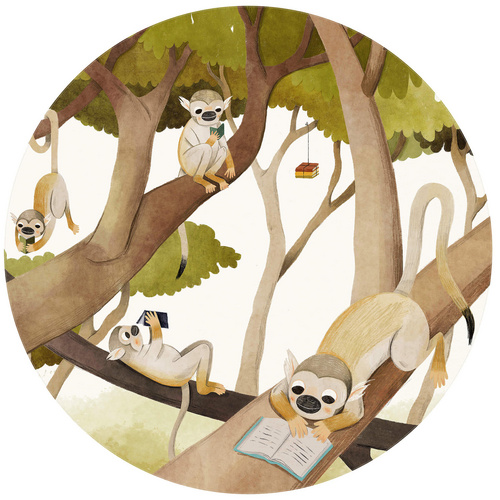 Marke: K&L Wall Art · Farbe: mehrfarbig · Serienname: Runde Vliestapete · Glanzgrad: matt · Anzahl Rollen: 6 · Tapetenart: Fototapete · Überstreichbarkeit: Nicht überstreichbar · Motivbezeichnung: Loske Schlaue Äffchen Kinder Technische Daten · Ergiebigkeit (min.): 62 m² · Ergiebigkeit (max.): 633 m² · Farbbeständigkeit: Gut lichtbeständig (Wert 5) Maßangaben · Länge: 2,84 m · Breite: 2,84 mMaterialangaben · Oberflächenstruktur: glatt · Material: Vlies Funktionen und Ausstattung · Geeignet für Feuchtraum: Nein Hinweise · Kleisterempfehlung: Vlieskleister · Verarbeitung: Wand einkleistern · Entfernen der Tapete: Restlos trocken abziehbar · Waschbarkeit: Verschmutzungen, sofern wasserlöslich, dürfen mit milder Lauge und weichen Schwamm leicht abgewischt werden. Lieferung · Lieferumfang: 6 Tapetenrollen